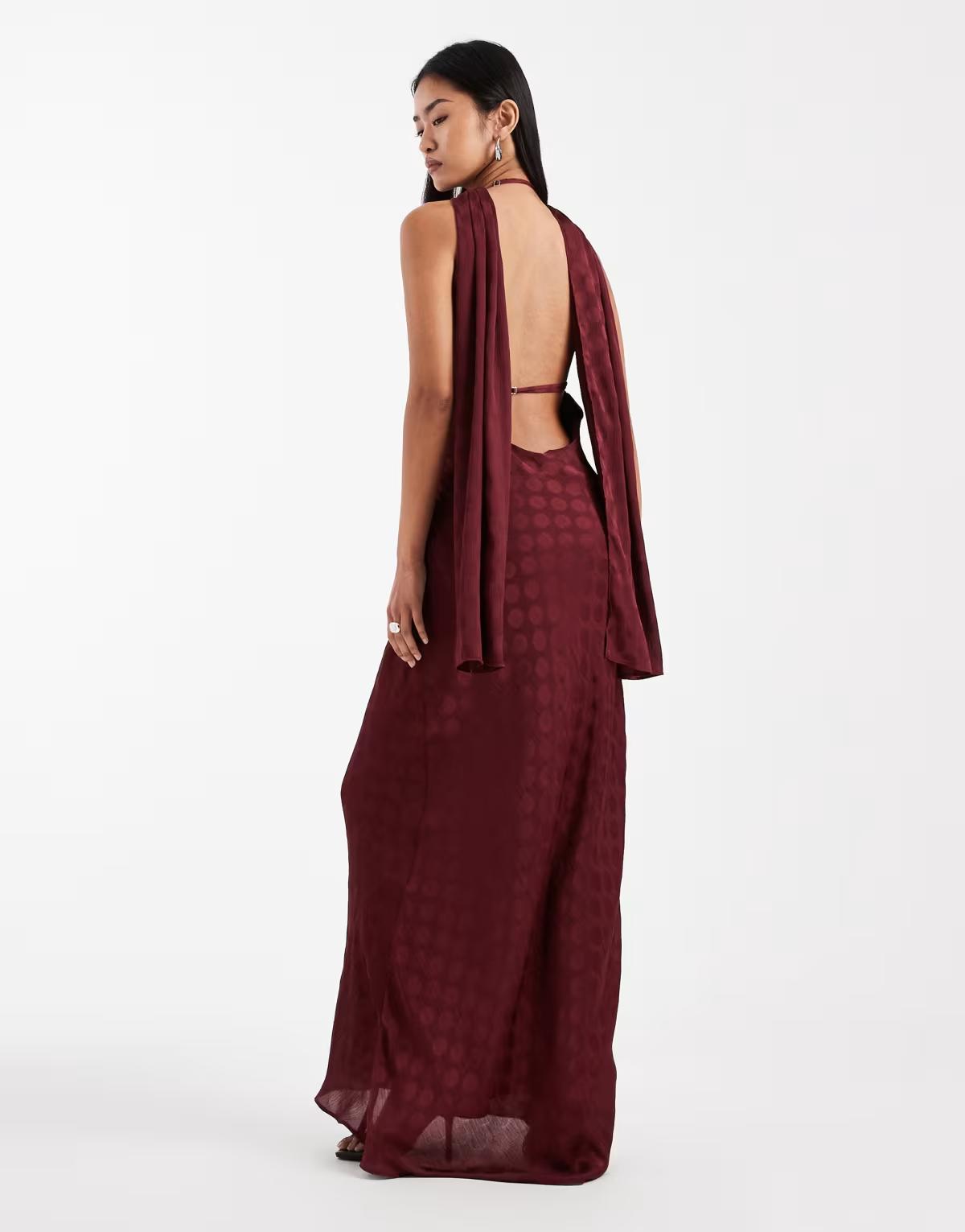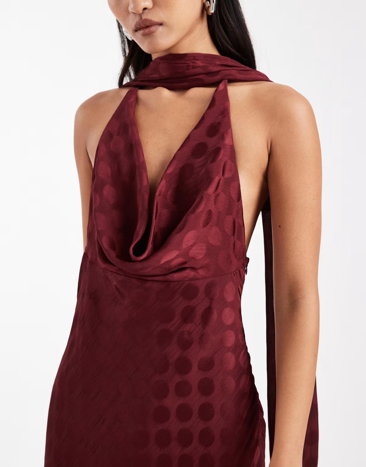 ASOS DESIGN scarf cowl neck maxi dress in plum spot