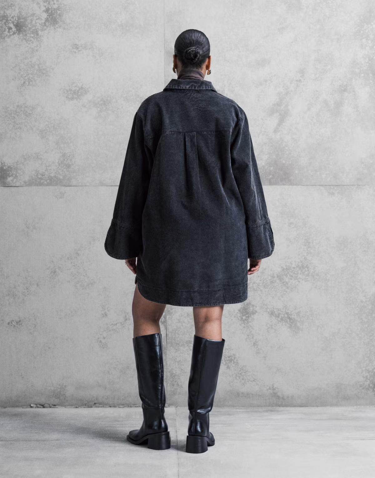 ASOS DESIGN Curve cord mini shirt dress with wide cuffs and oversized pockets in washed black