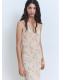 Diseño largo. Diseño recto. Cuello drapeado. Sin mangas. Tirantes anchos. Estampado floral. Cierre de cremallera lateral. Forro interior