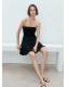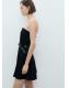 Diseño corto. Diseño evasé. Diseño de tablas. Palabra de honor. Sin mangas. Cierre de cremallera en la parte posterior
