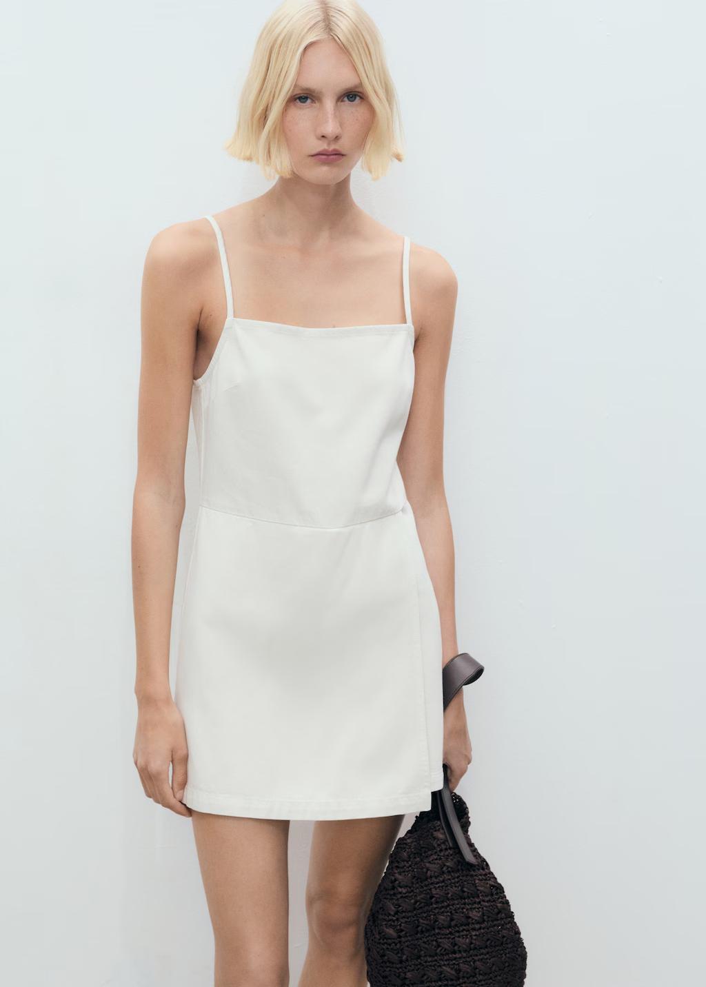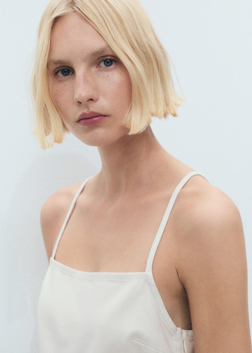 Tejido de algodón estilo tejano vaquero. Diseño corto. Falda pantalón. Cuello escotado. Sin mangas. Tirantes finos. Cierre de cremallera lateral. Esta prenda forma parte de nuestra colección casual, diseñada para acompañarte con estilo en tu día a día