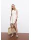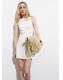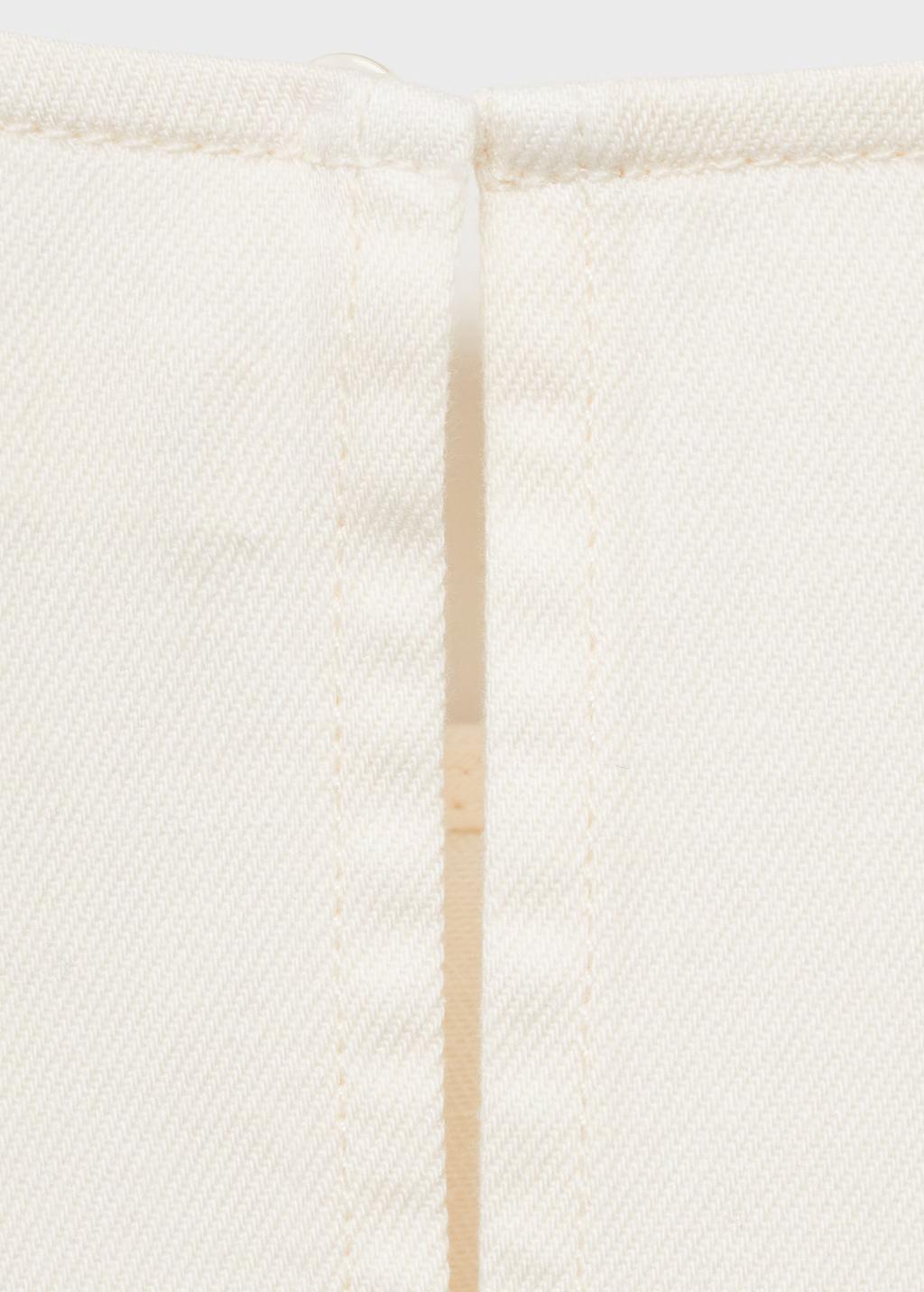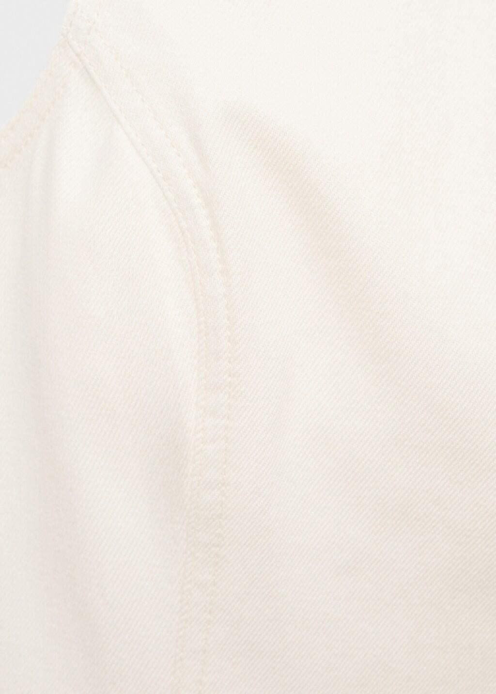 Tejido de algodón estilo tejano vaquero. Diseño corto. Diseño evasé. Cuello caja. Sin mangas. Tirantes anchos. Cierre de botón en la parte posterior. Esta prenda forma parte de nuestra colección casual, diseñada para acompañarte con estilo en tu día a día
