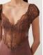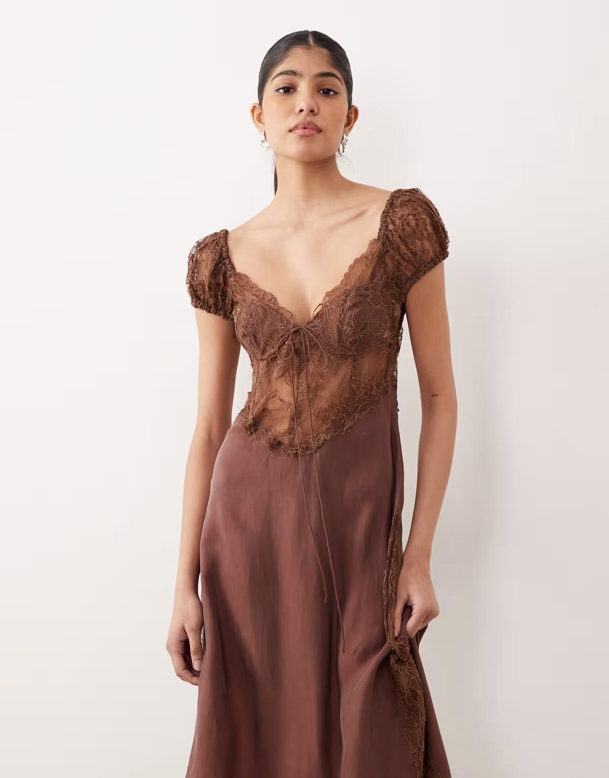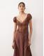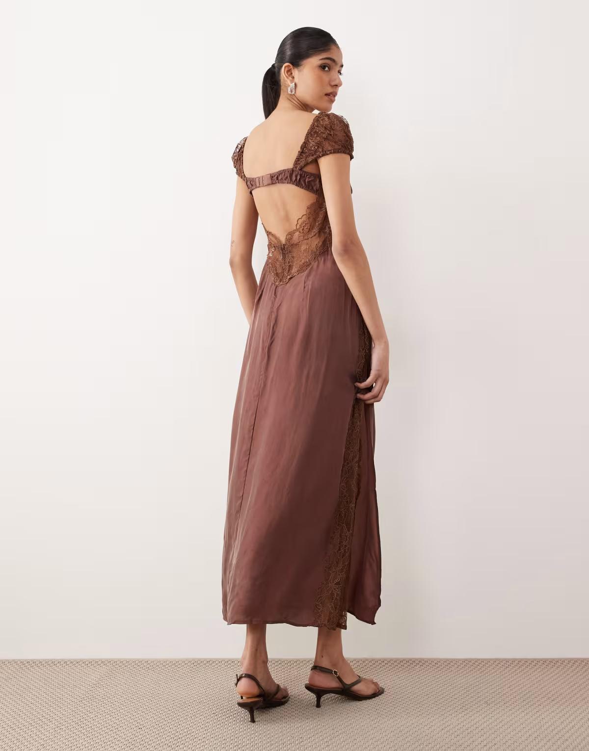 For Love & Lemons Casey chiffon and lace open back maxi dress in chocolate