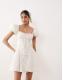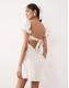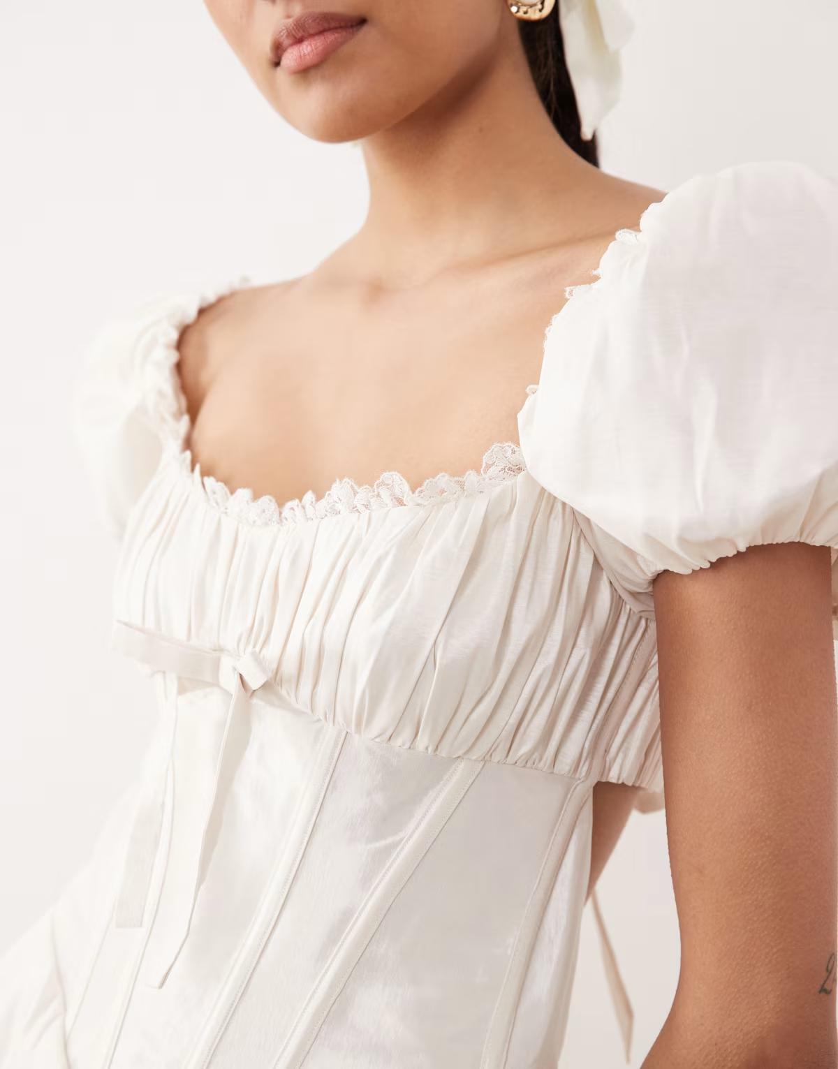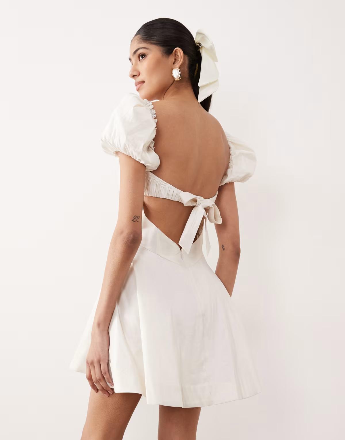 For Love & Lemons Bridal Evaline puff sleeve corset bow detail open back mini dress in white
