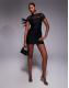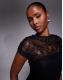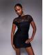 ASOS DESIGN lace draped shoulder mesh mini dress with ruching in black