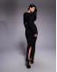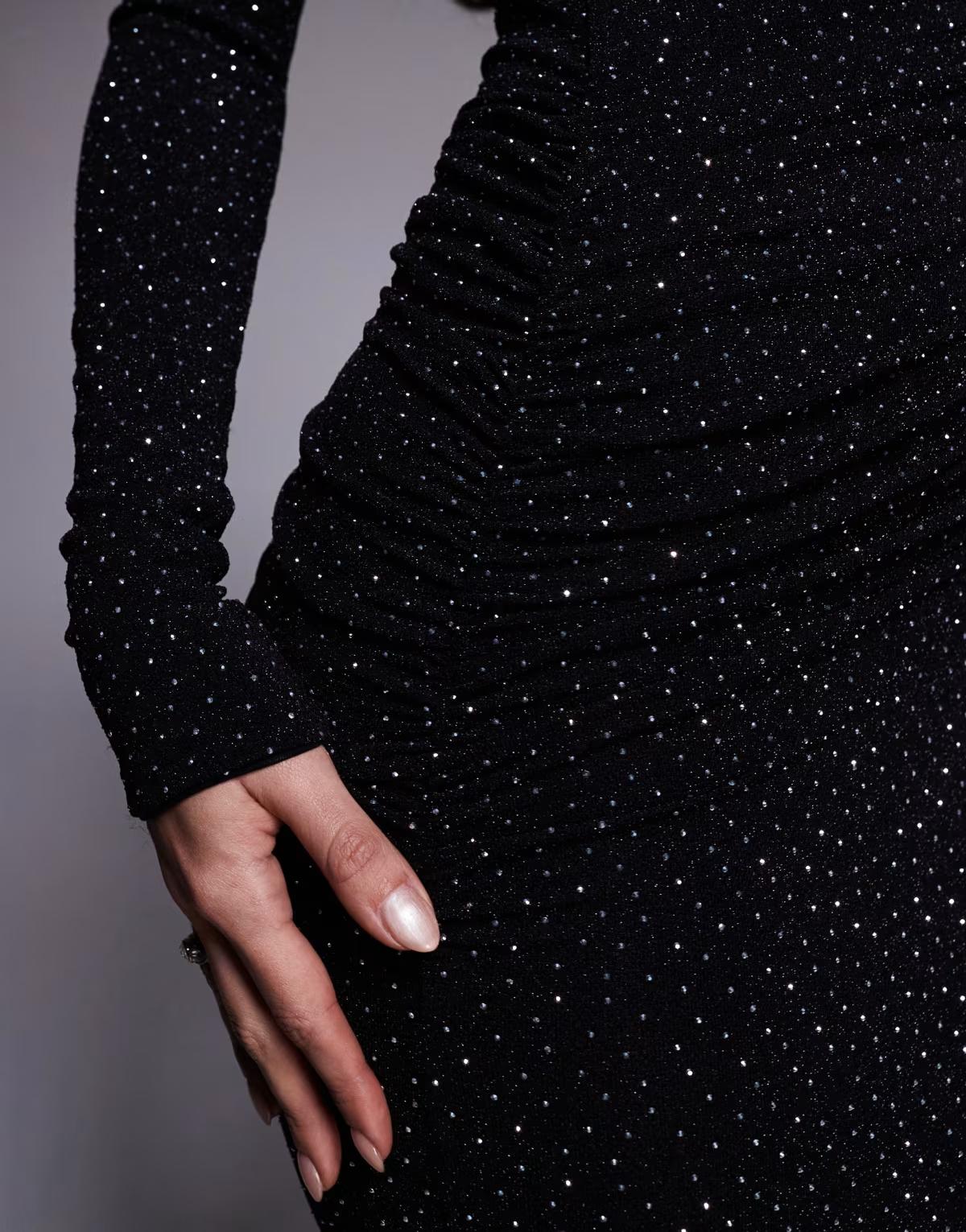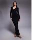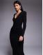 Wanderdoll Drew sculpted hot fix plunge neck ruched detail maxi dress in black