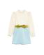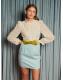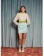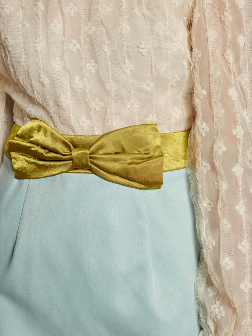 A show-stopping act, the Eloise Colour Block Mini Dress blends chiffon and satin in a dream of movement and hue. A vivid green bow and blue skirt set the stage for bold new illusions.