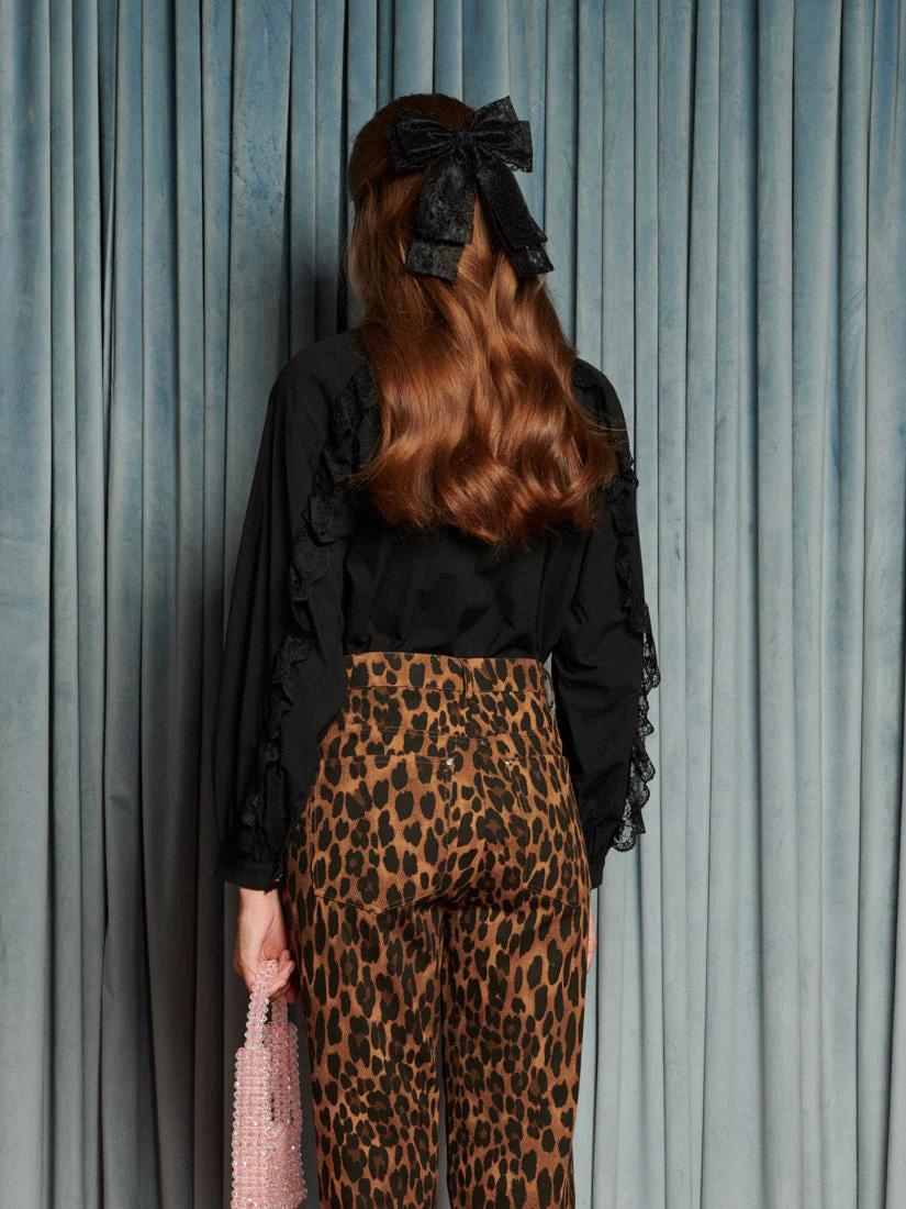 The Lullaby Lace Trim Blouse hums a soft refrain of nostalgia. Flower buttons and delicate lace trims conjure vintage dreams, tied together with a whisper of romance at the neck. Romance with a wild card? Pair with Matteo Leopard Jeans.