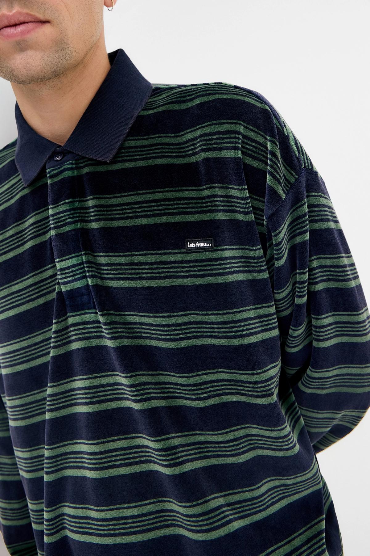 iets frans... Navy & Green Stripe Velour Polo Shirt
