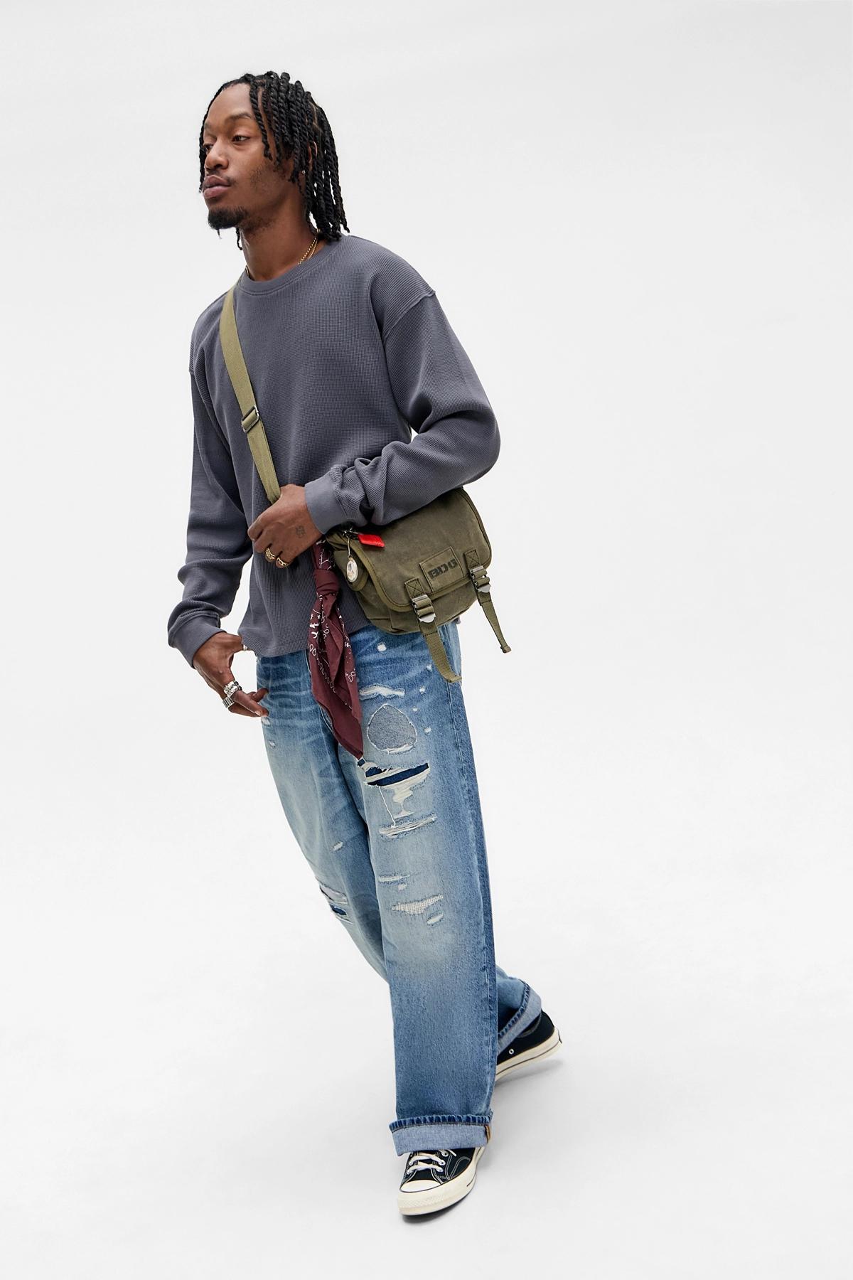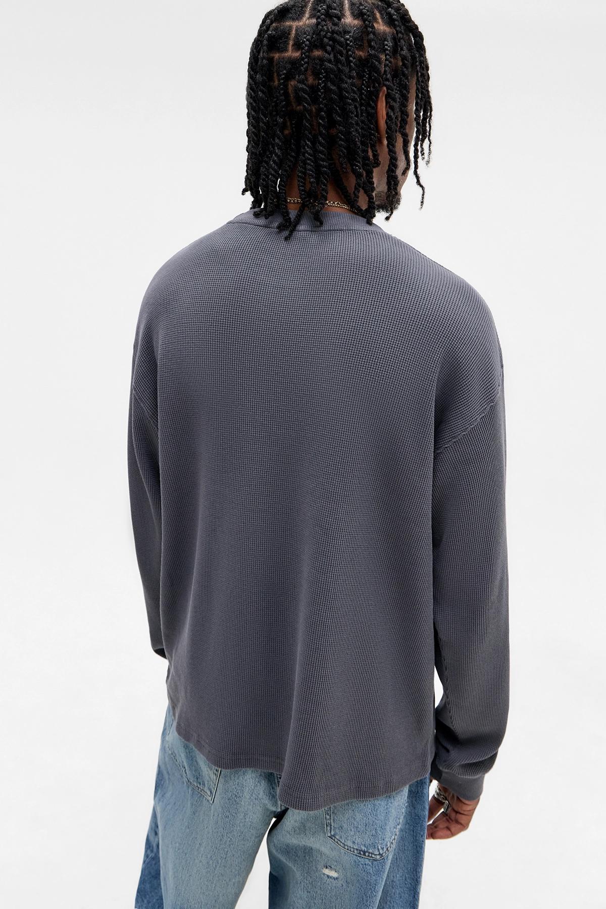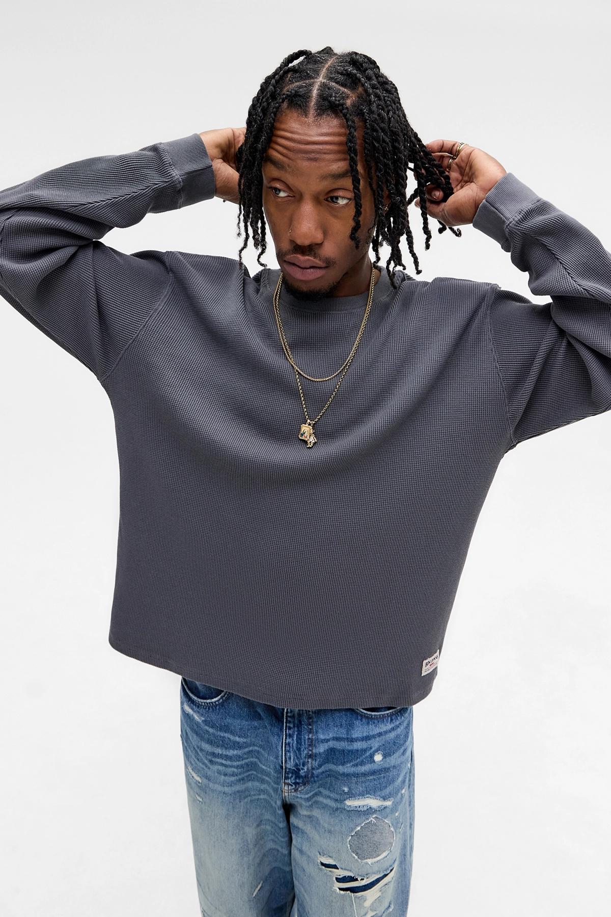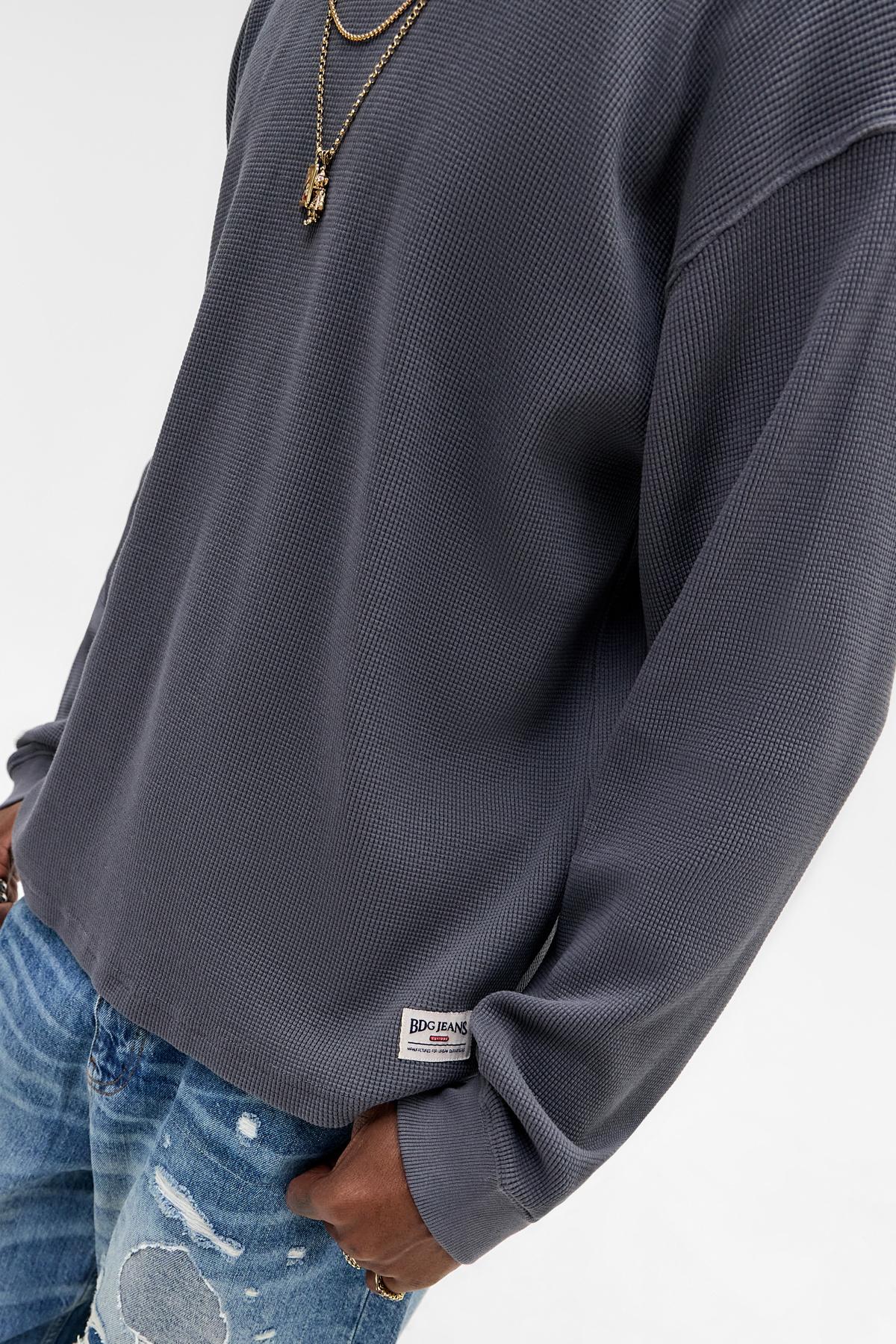 BDG Dark Grey Plain Long Sleeve Waffle T-Shirt