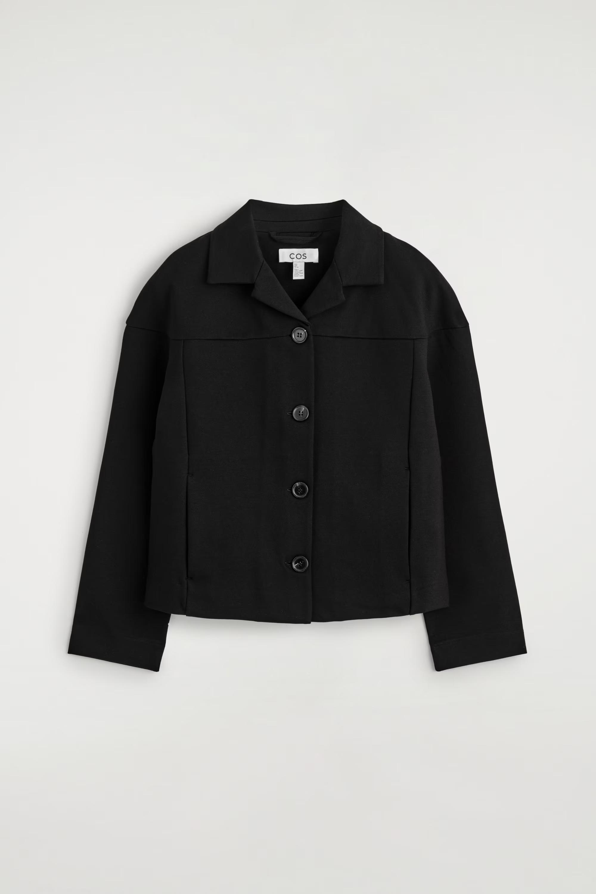 This modern jacket has a panelled construction and a tailored silhouette with clean lapels, subtle side seam pockets and tonal buttons. Lean into a monochrome palette by styling it with tonal trousers.\u0026nbsp;Regular fitButton closureLENZING\u0026trade; ECOVERO\u0026trade; viscose is a branded viscose fibre, made from wood pulp\u0026nbsp;Shel: 73% ECOVERO\u0026trade; viscose, 23% Polyamide (Nylon), 4% Elastane. Excluding trims / Machine wash\u0026nbsp;Back length of size S is 48.2cm / Model wears a size S