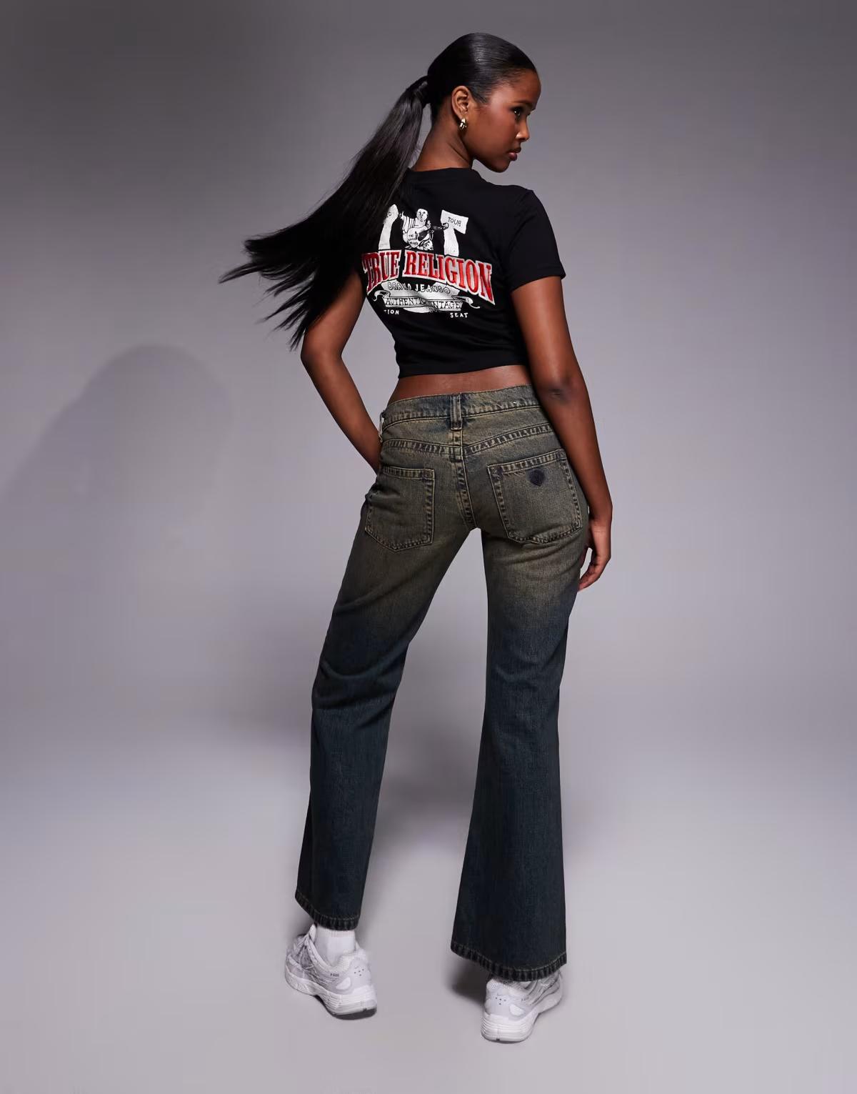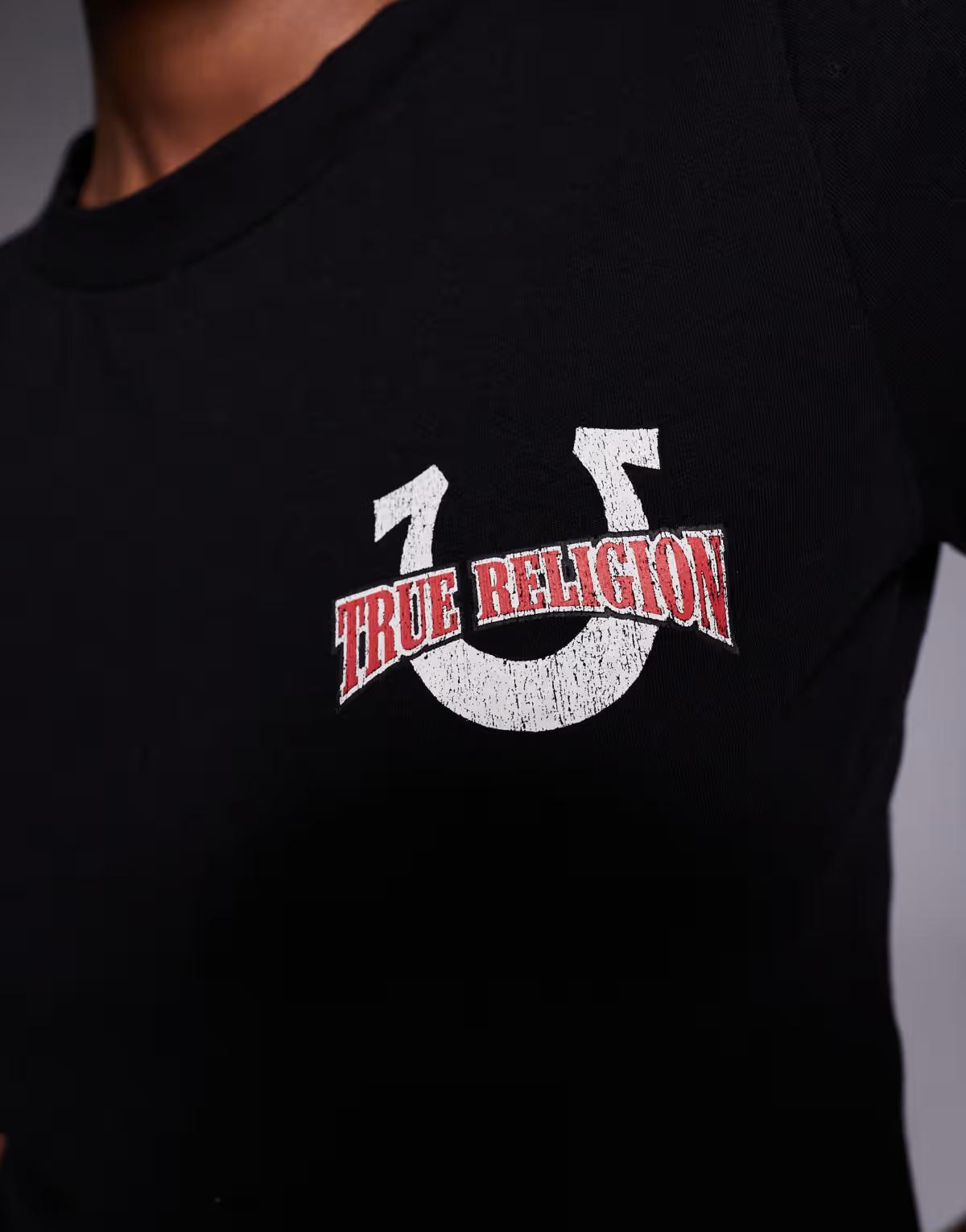 Machine wash according to instructions on care labelMain: 95% Cotton, 5% Elastane.Founded in 2002 by textile entrepreneur Jeffrey Lubell, True Religion was created to redefine premium denim with a vintage-inspired, 1970s bohemian-chic aesthetic - reflected in its guitar-playing Buddha logo. The brand takes pride in exceptional craftsmanship and attention to detail: from perfectly fitting jeans and statement T-shirts to iconic contrast stitching and distinctive washes, every piece delivers an elevated finish. Discover our True Religion edit at ASOS and explore denim and more with a unique edge.