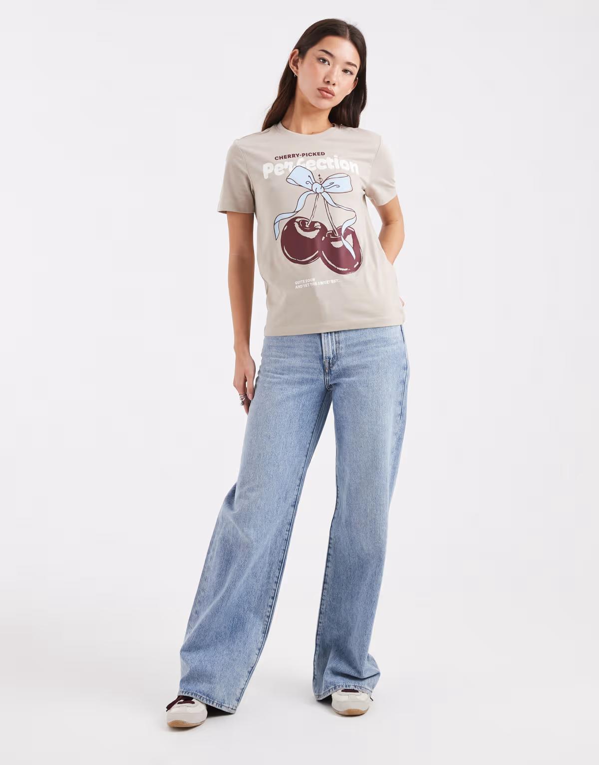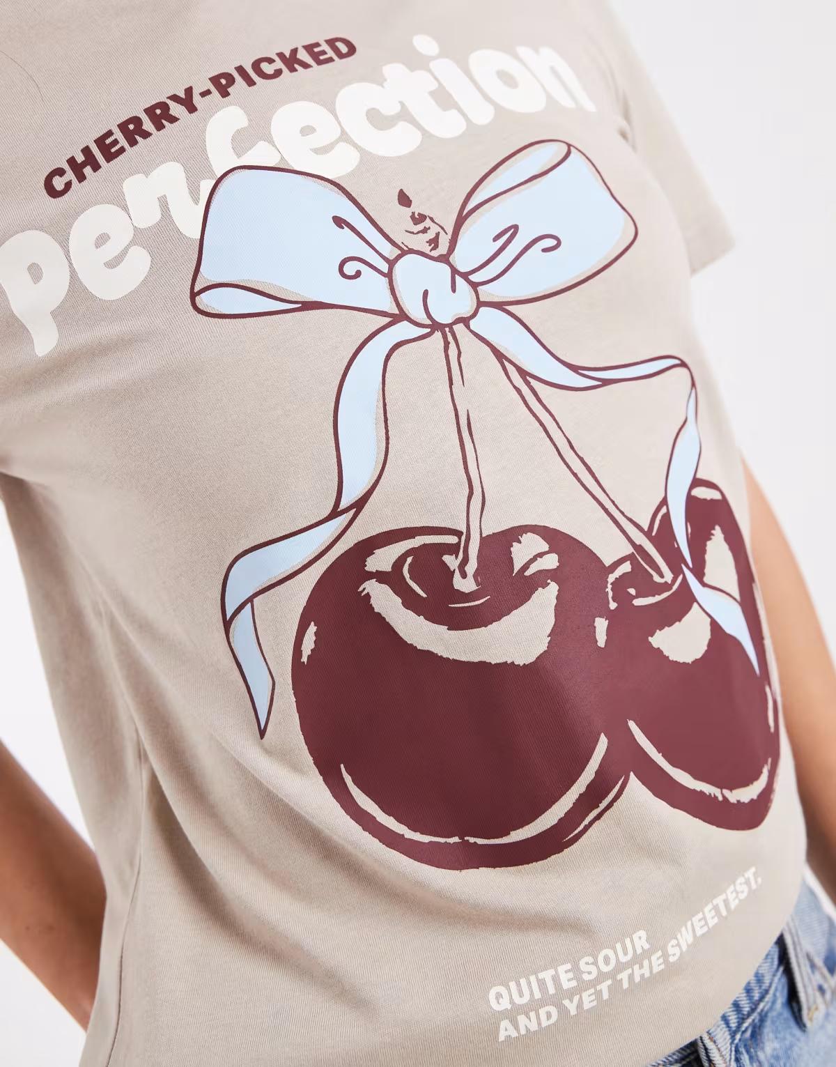 Cherry-inspired graphic and text print on front