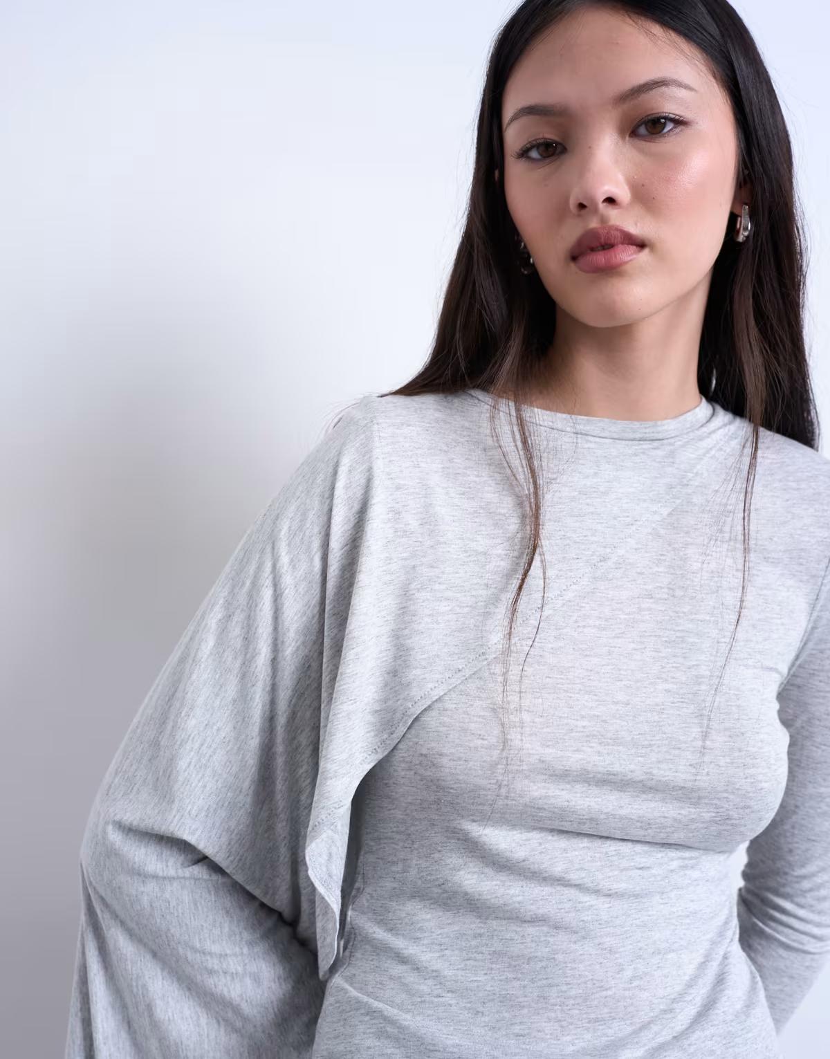A wardrobe staple with a twist, this T-shirt features an asymmetric cape overlay. It is cut from soft and drapey jersey fabric.
