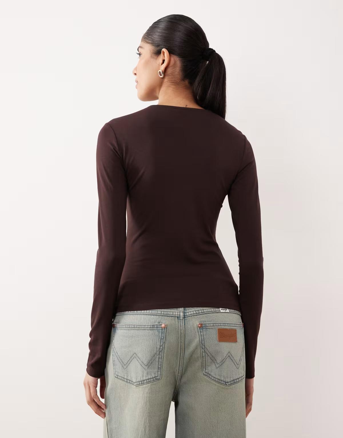 ASOS DESIGN interlock long line t shirt co ord in brown