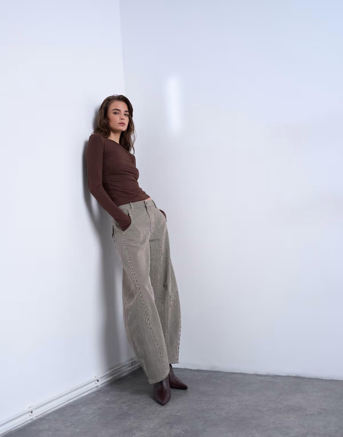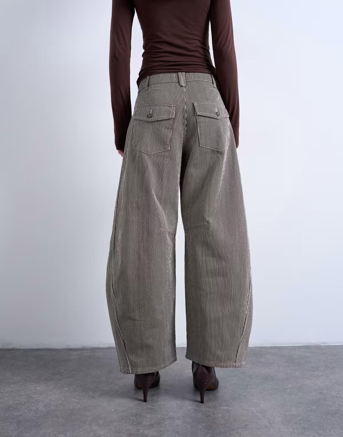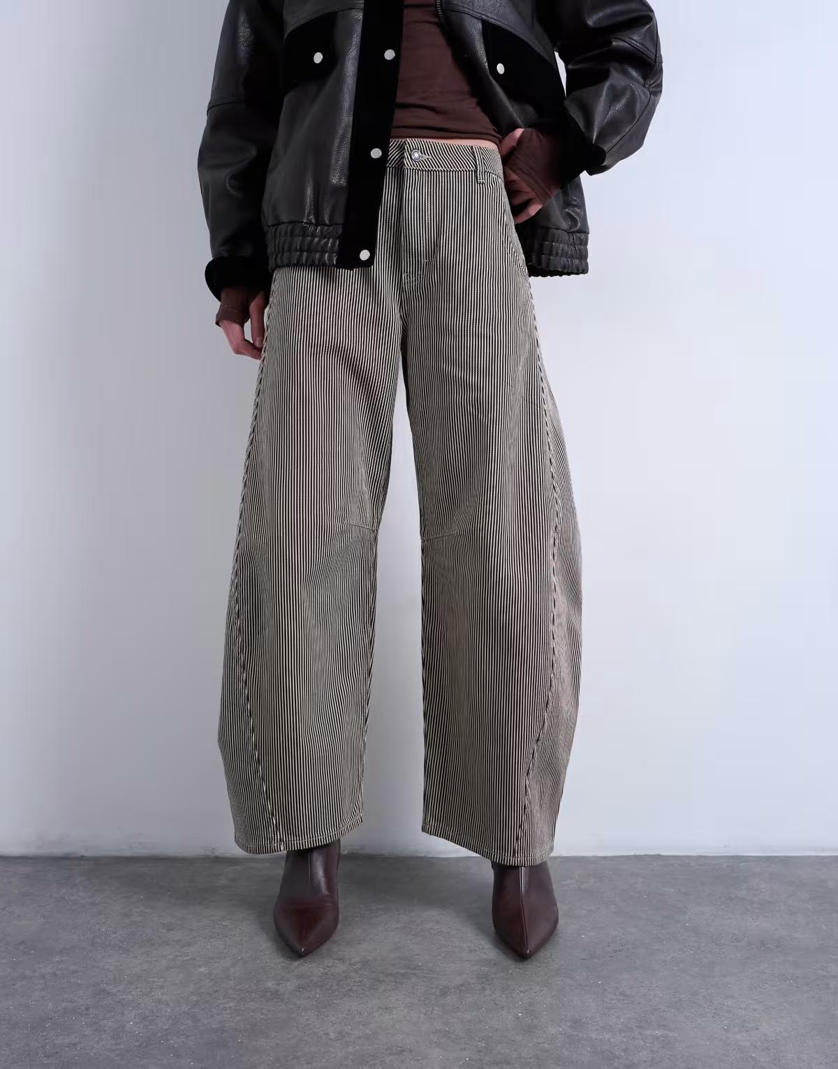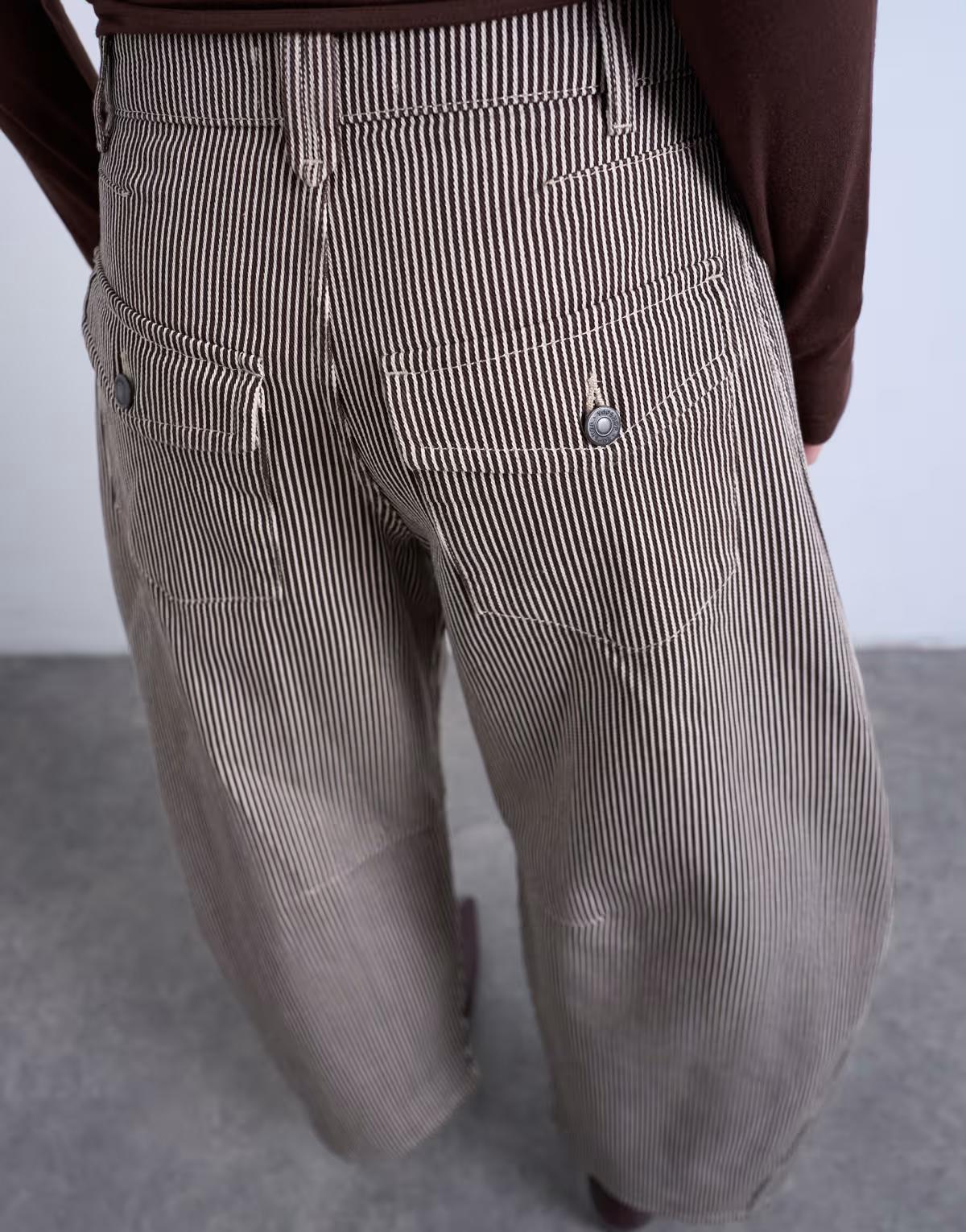 Horseshoe high rise barrel jean in brown stripe