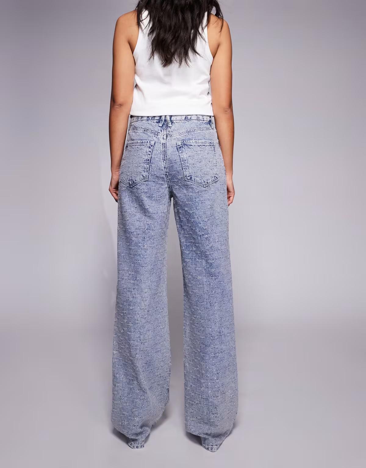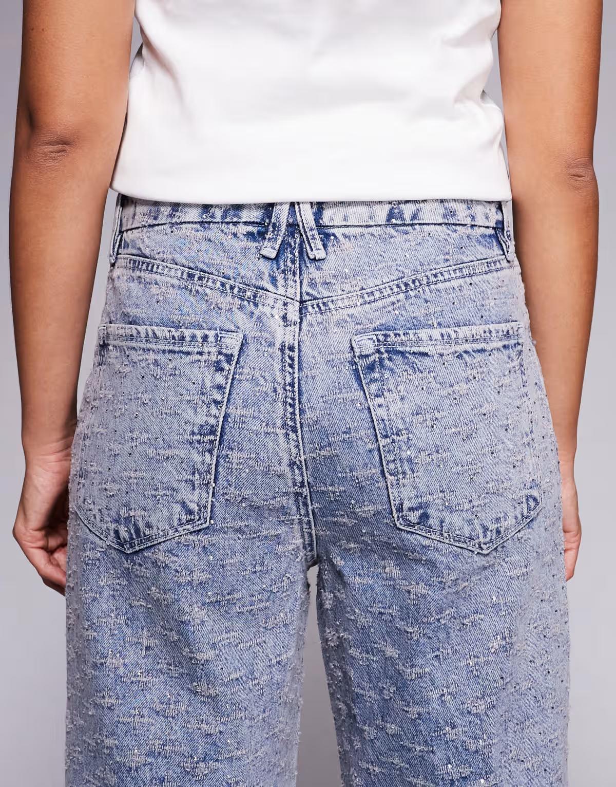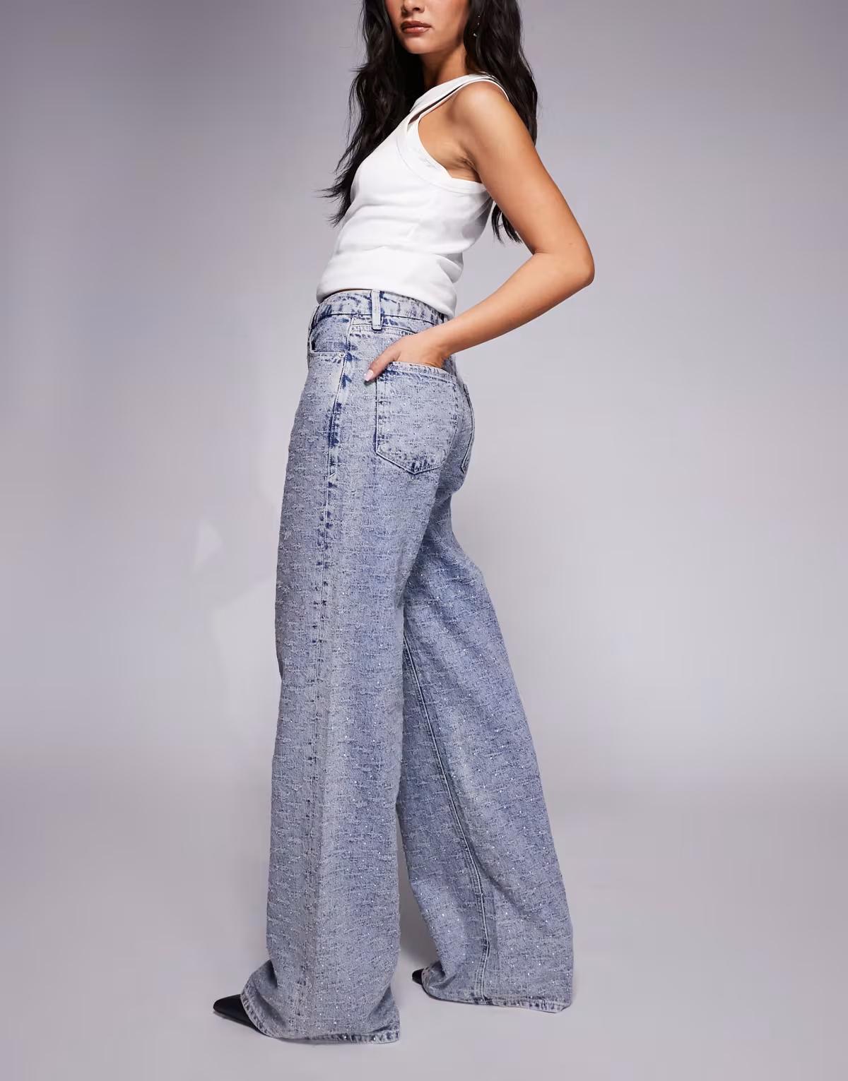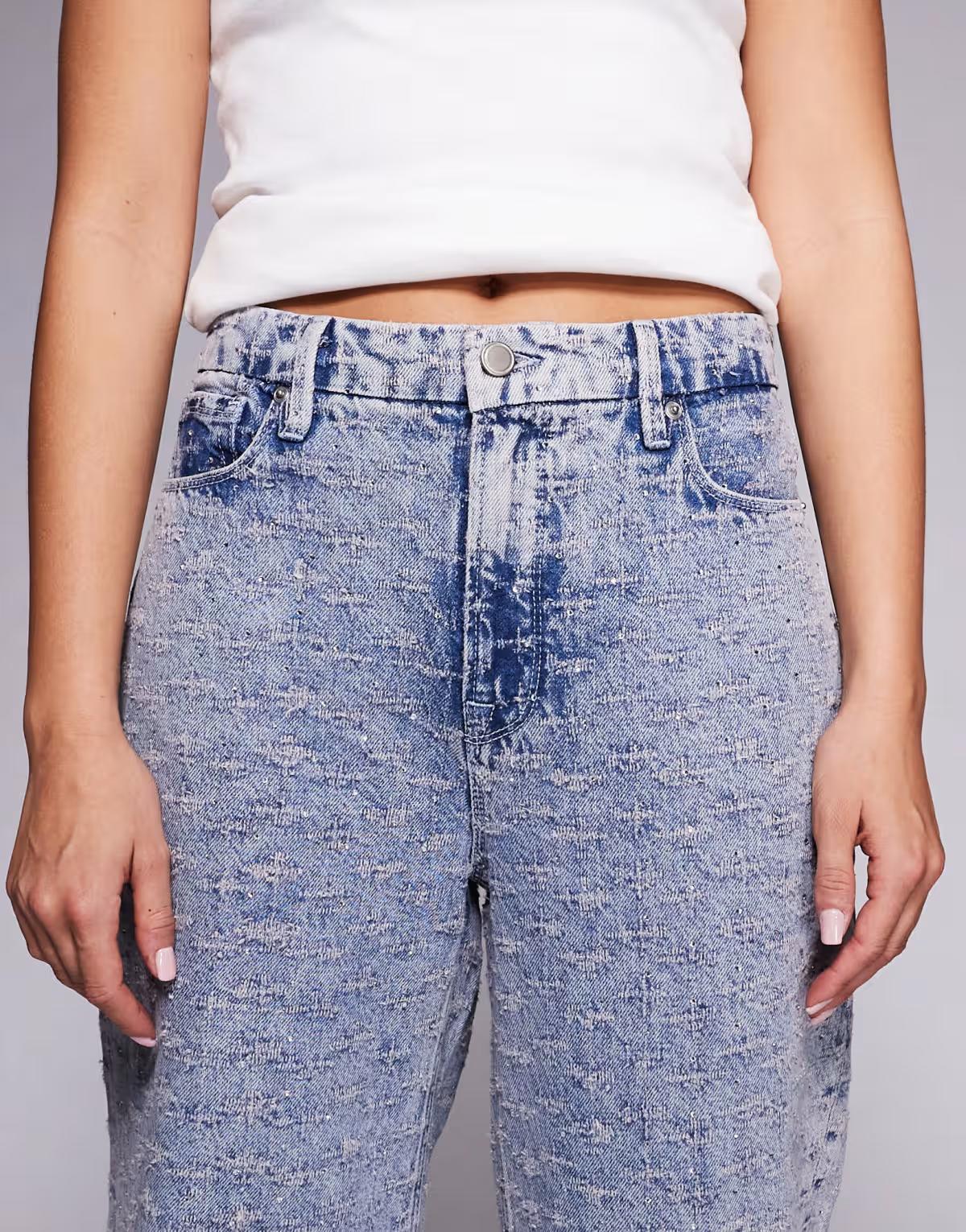 Good American good standard straight crystal embellished jeans in mid blue wash