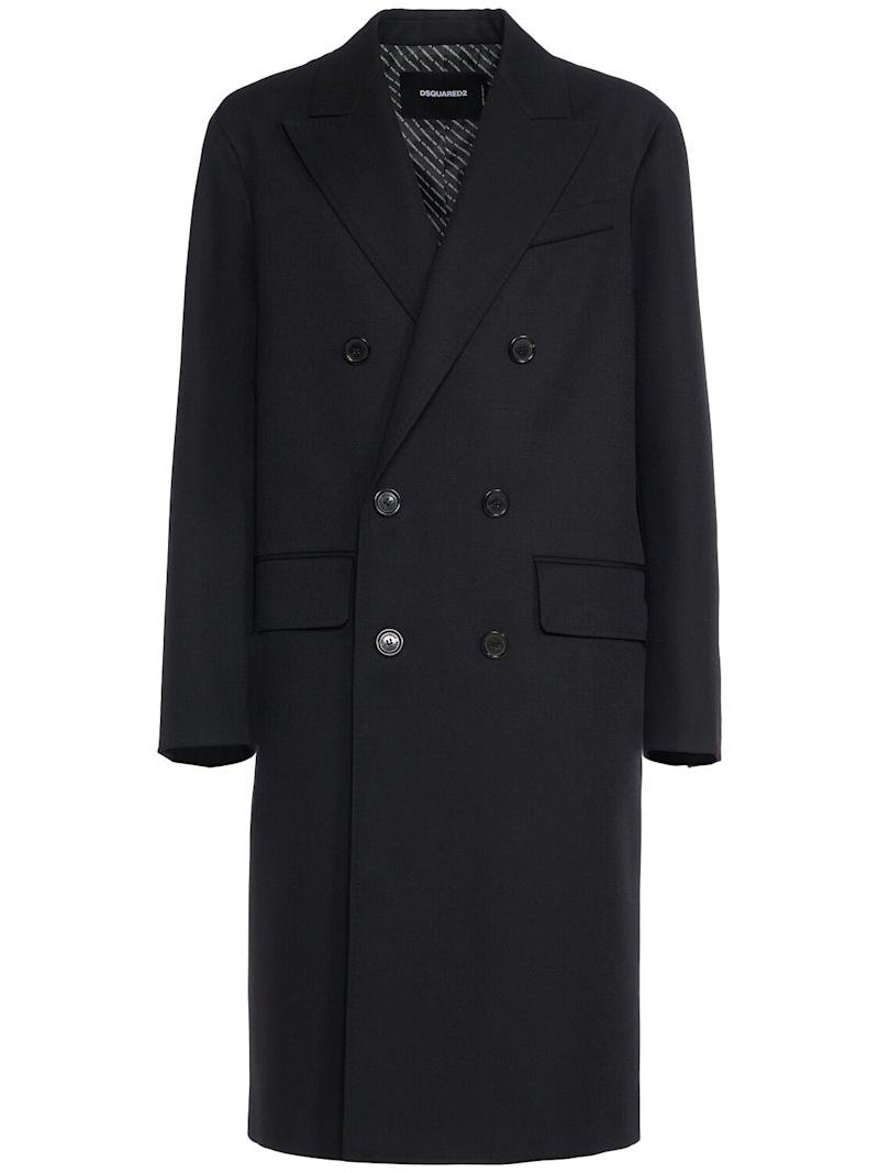 双排扣羊毛大衣 - 黑色 - 男士 - Dsquared2 - 正面纽扣开合.