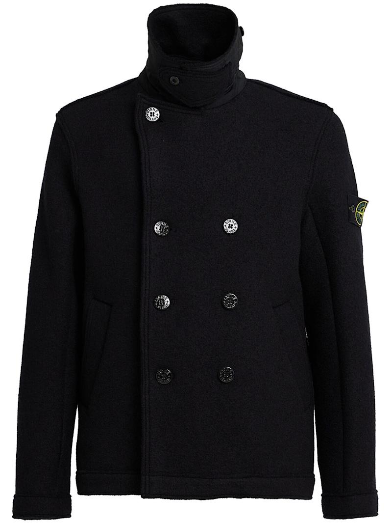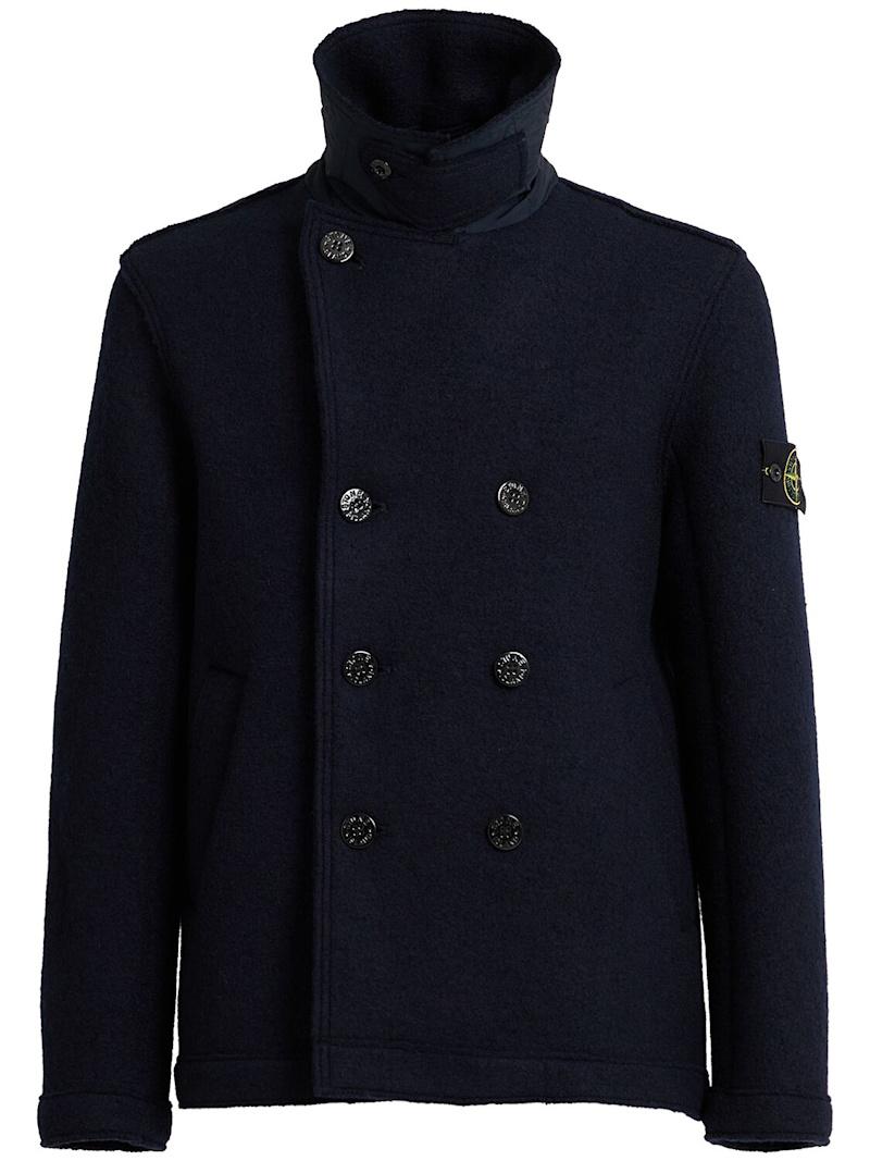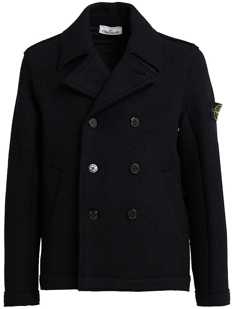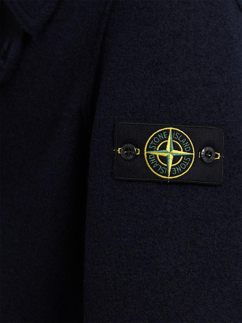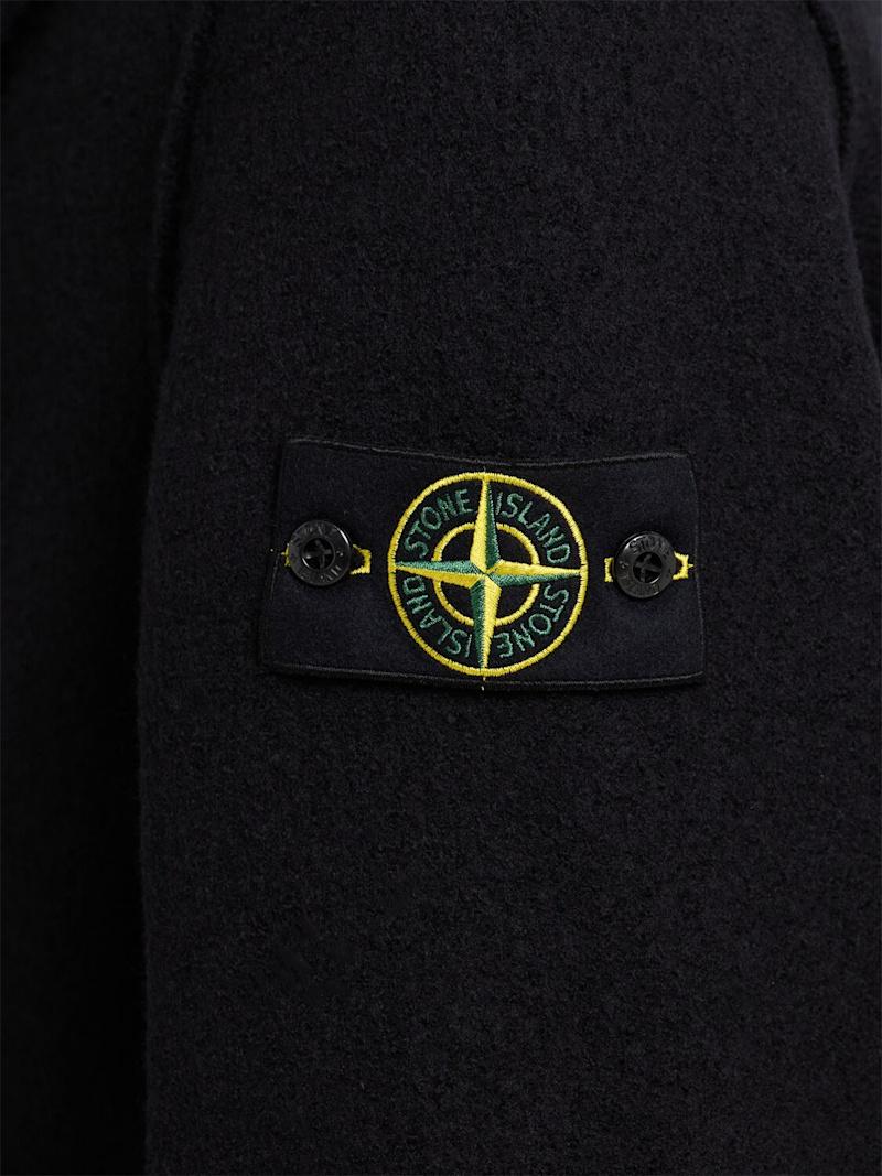羊毛毡羊毛开衫 - 海军蓝 - 男士 - Stone Island - 正面纽扣开合.