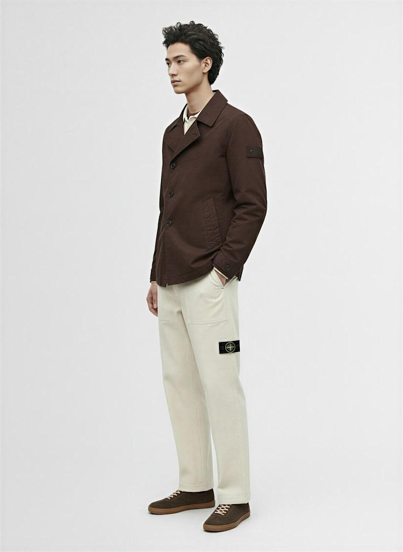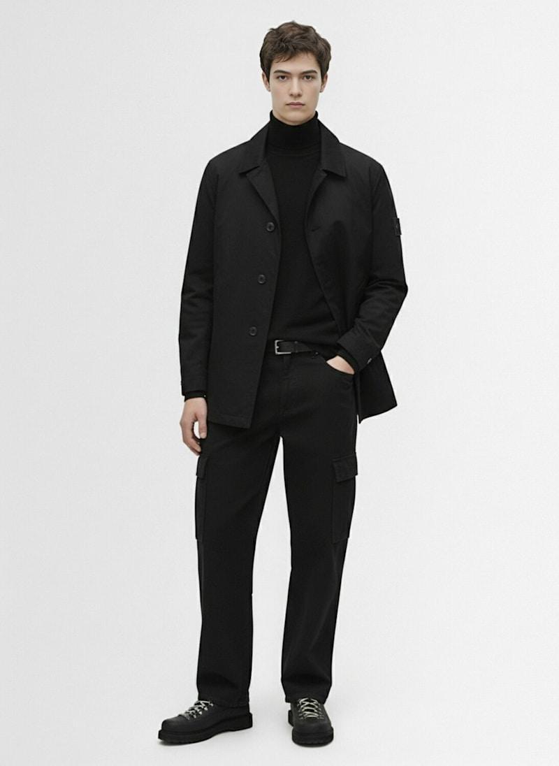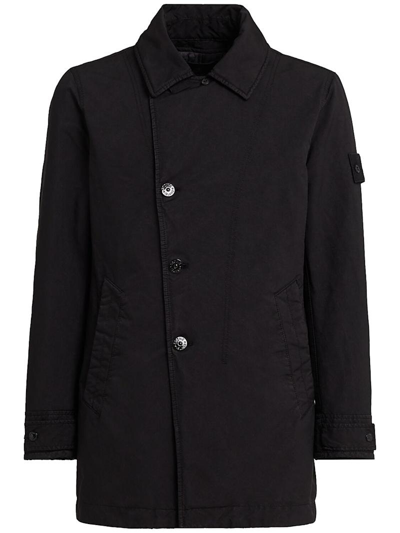 聚酯混纺夹克 - 黑色 - 男士 - Stone Island - 正面纽扣开合.