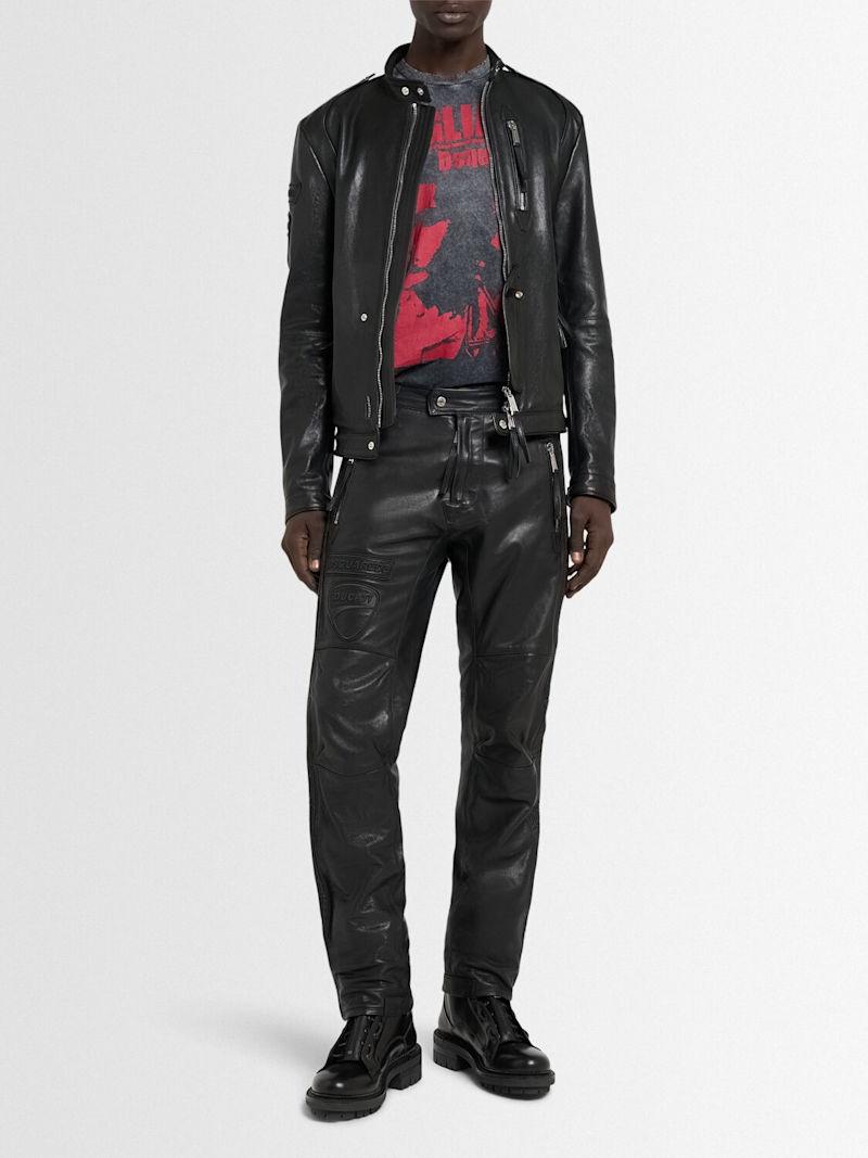 Ducati皮革夹克 - 黑色 - 男士 - Dsquared2 - 领口和下摆子母扣开合.