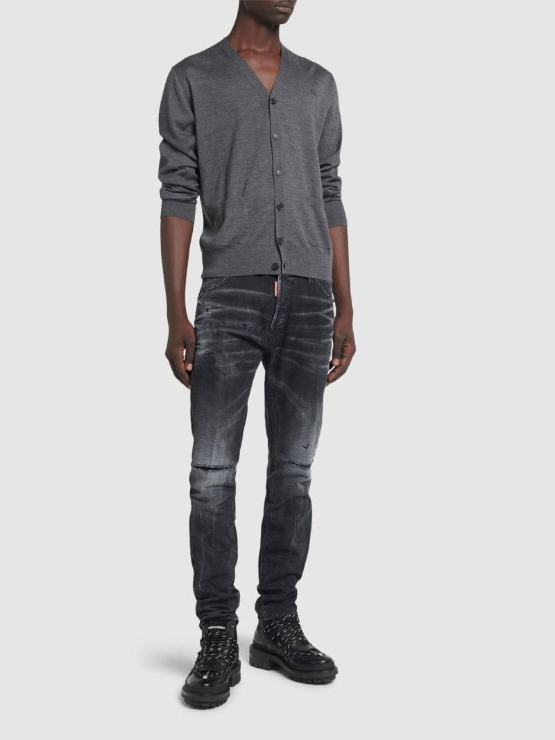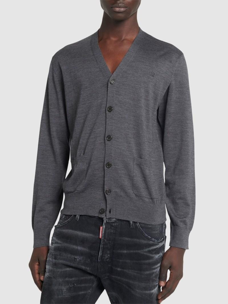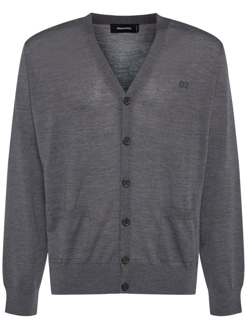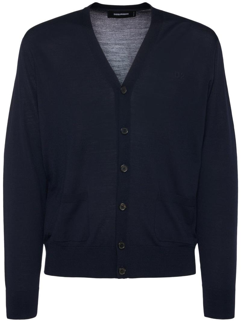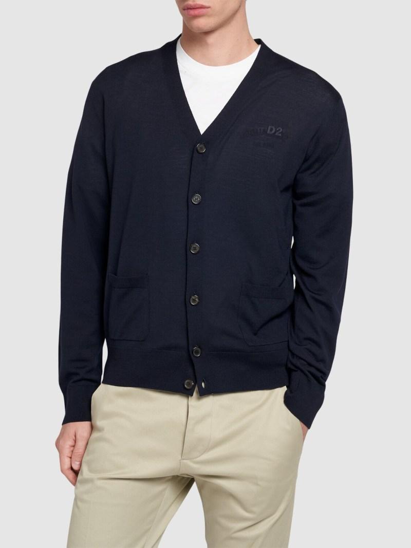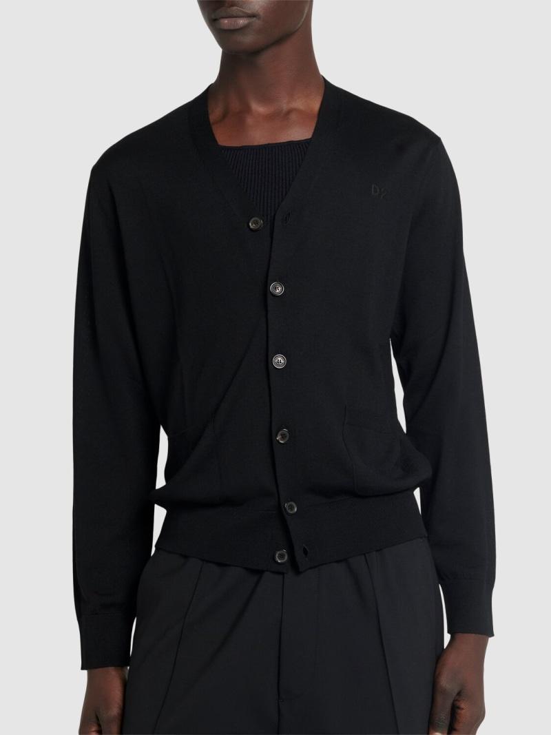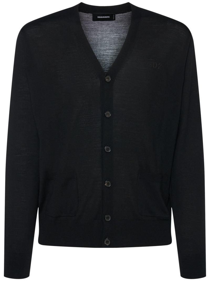 羊毛针织开衫 - 黑色 - 男士 - Dsquared2 - 正面纽扣开合.