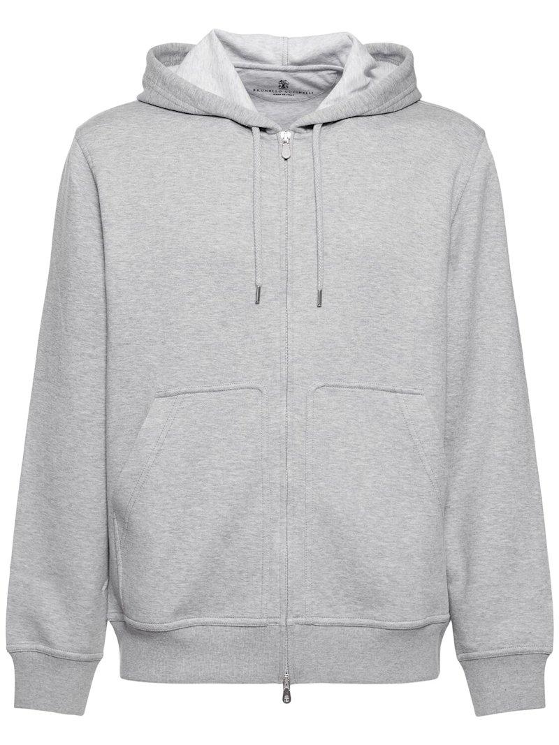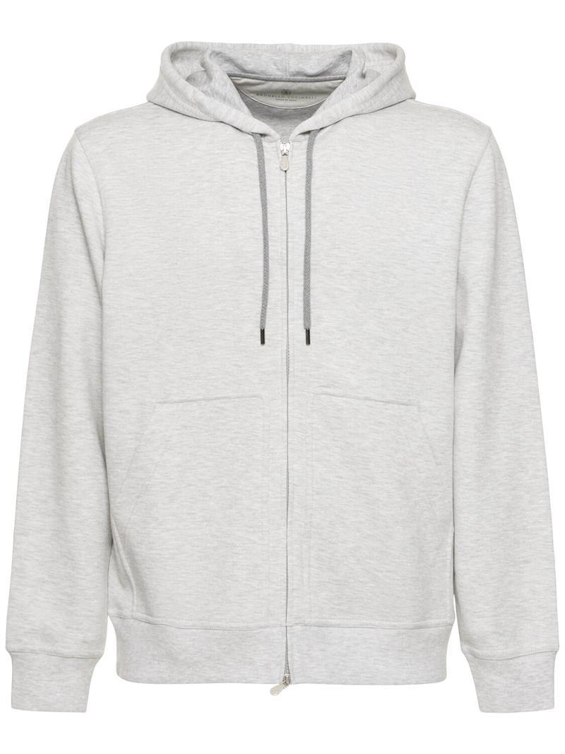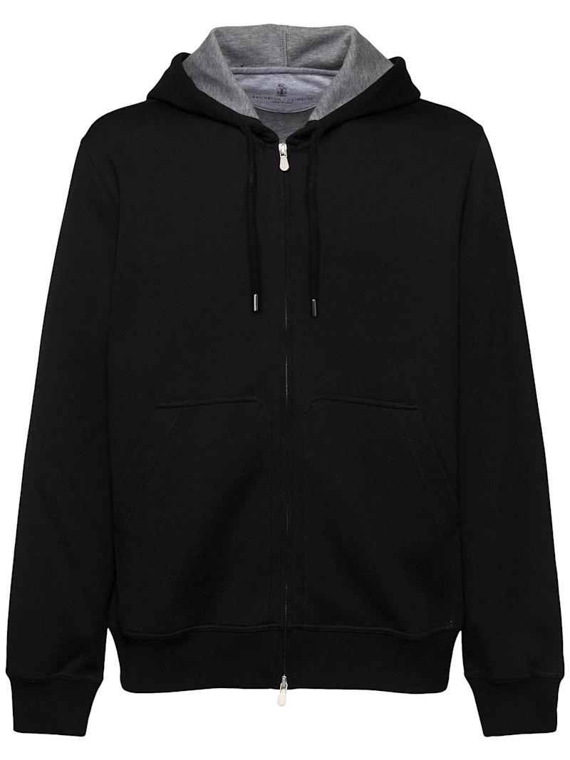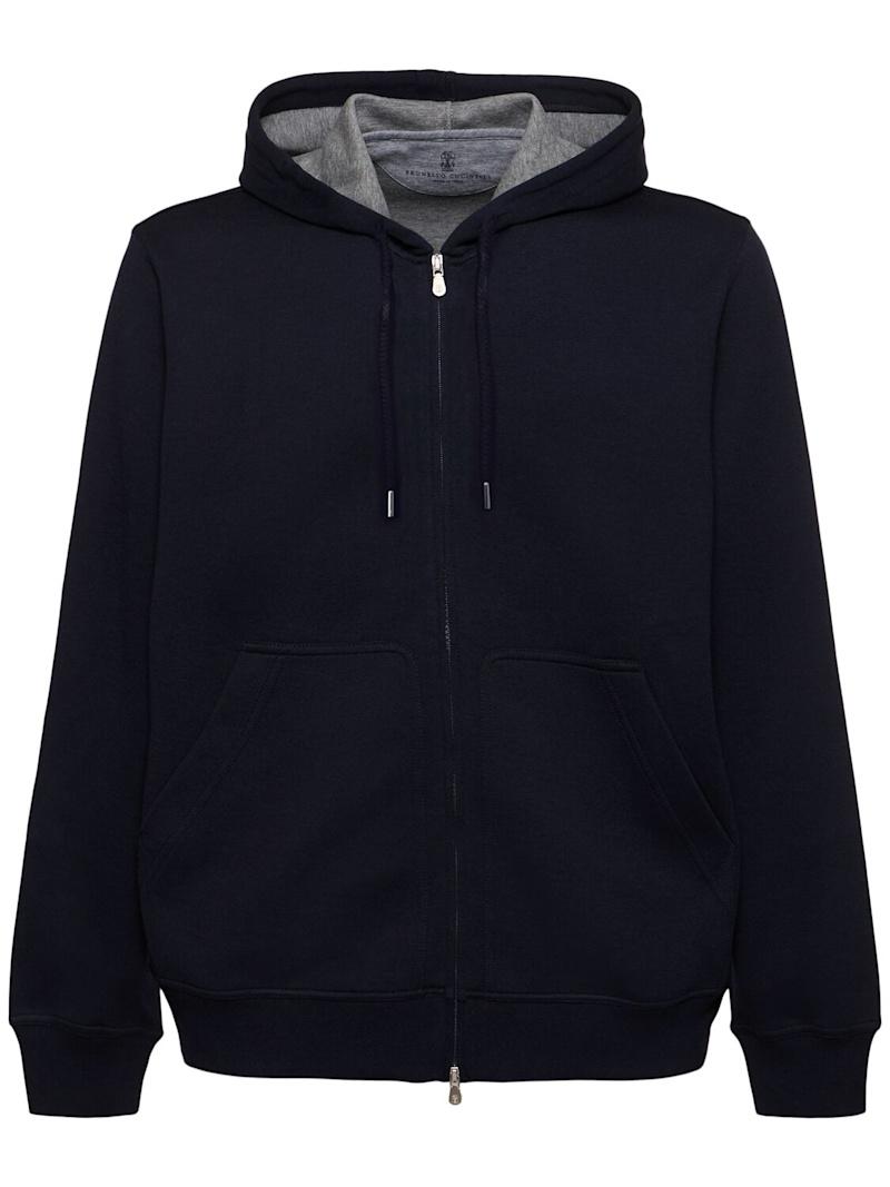 休闲拉链开合卫衣 - 钴色 - 男士 - Brunello Cucinelli - 不可拆卸风帽配有抽绳.