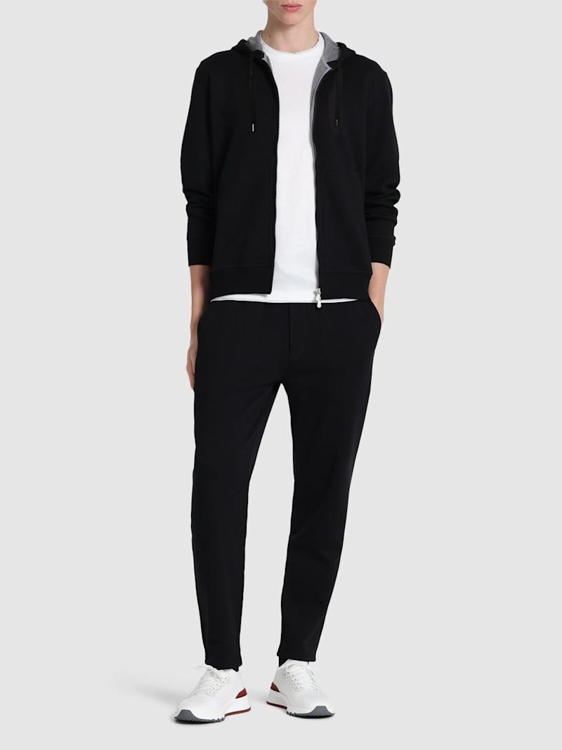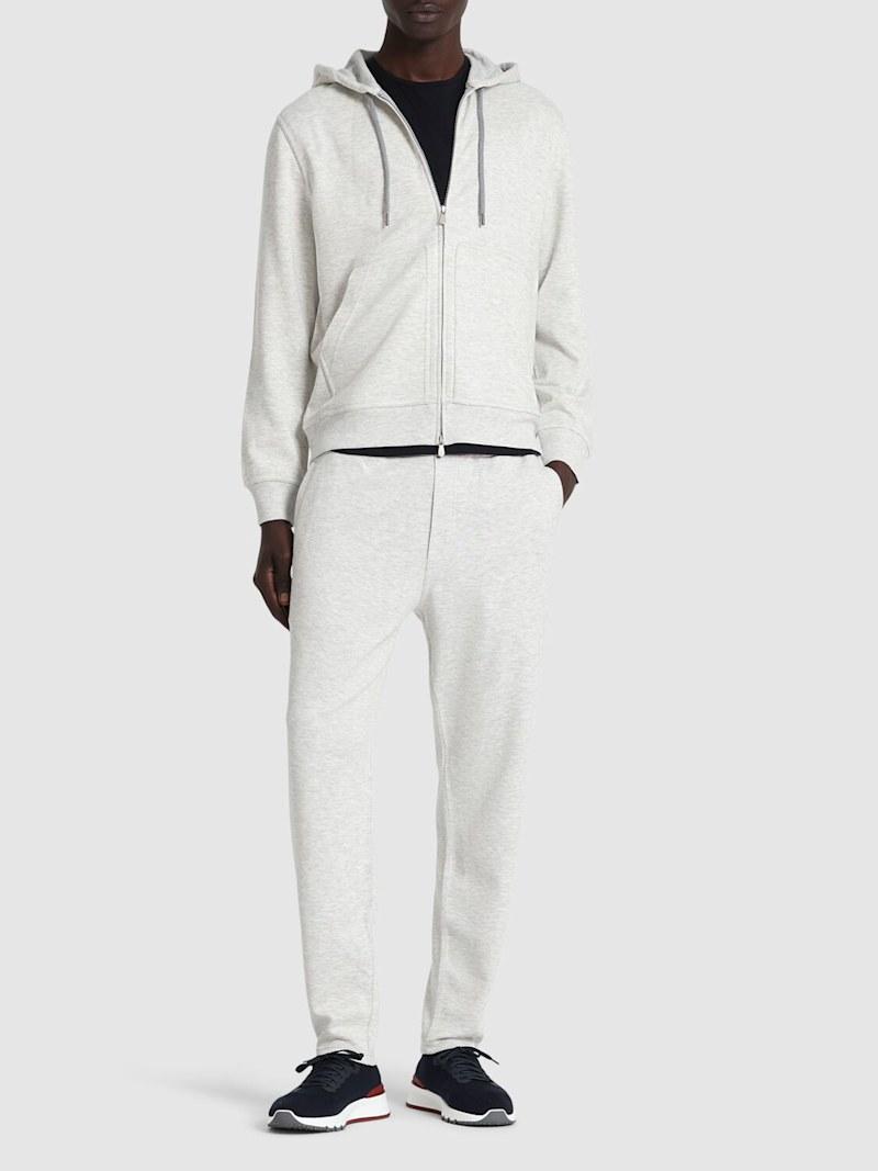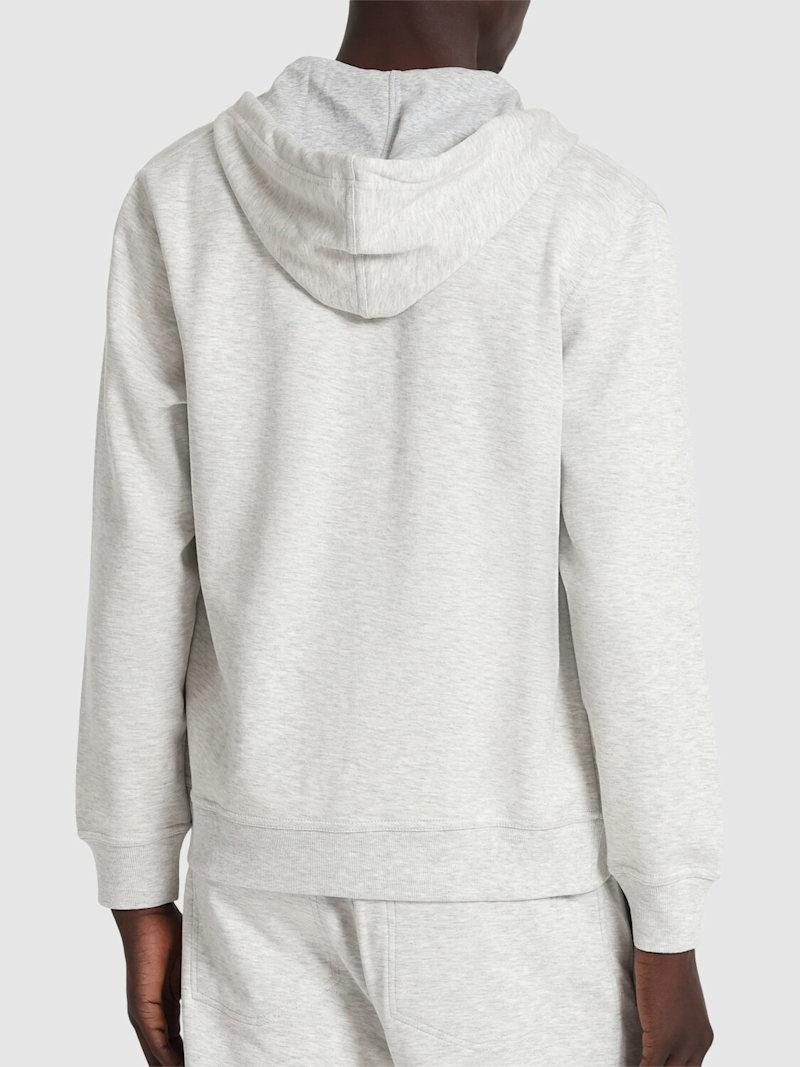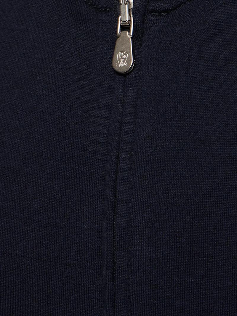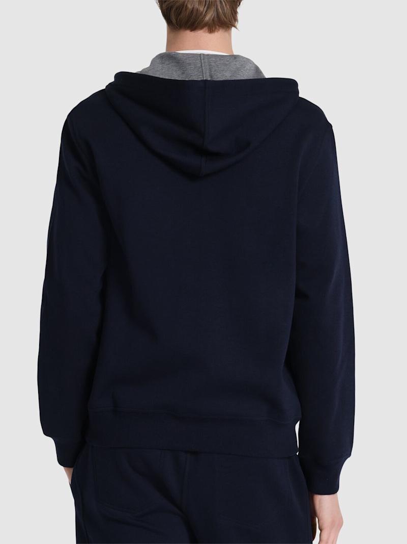 休闲拉链开合卫衣 - 钴色 - 男士 - Brunello Cucinelli - 不可拆卸风帽配有抽绳.