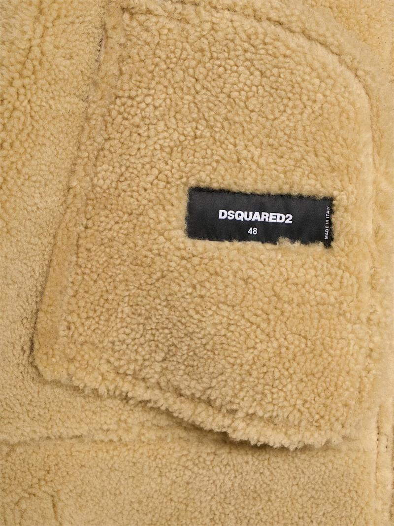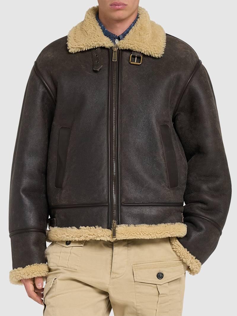 剪羊毛飞行员夹克 - 深棕色 - 男士 - Dsquared2 - 正面拉链开合.