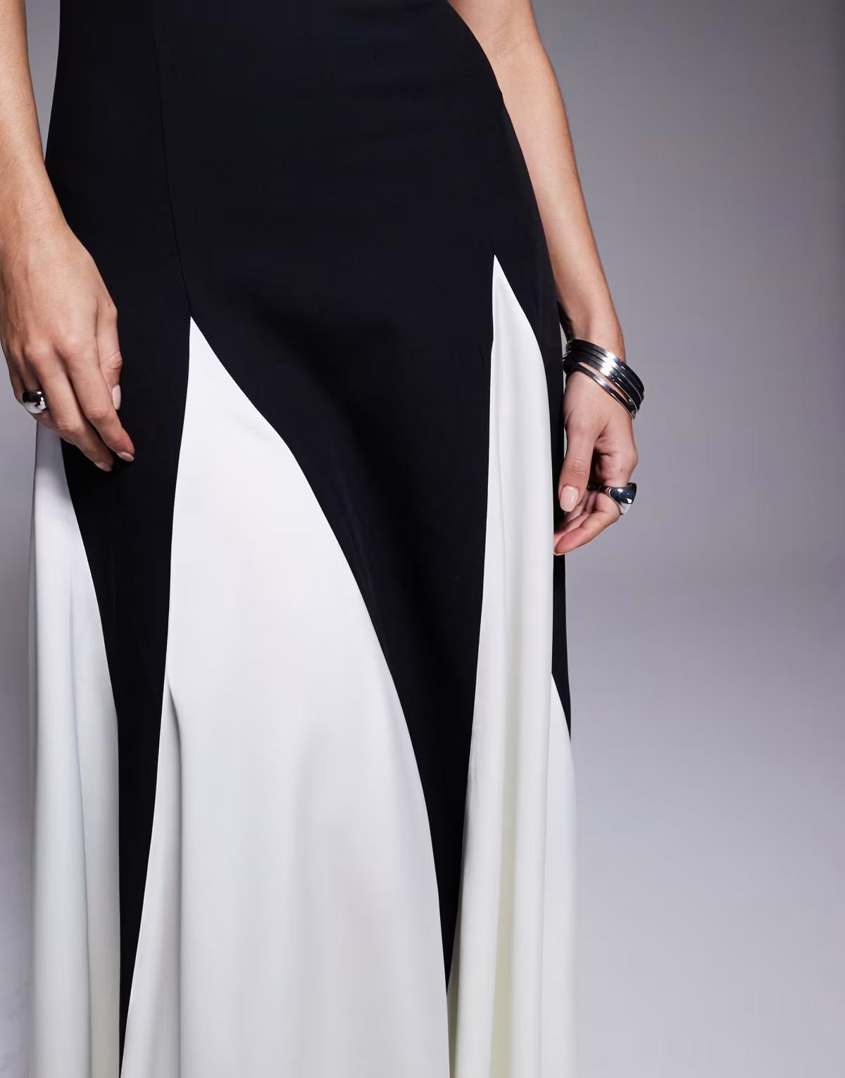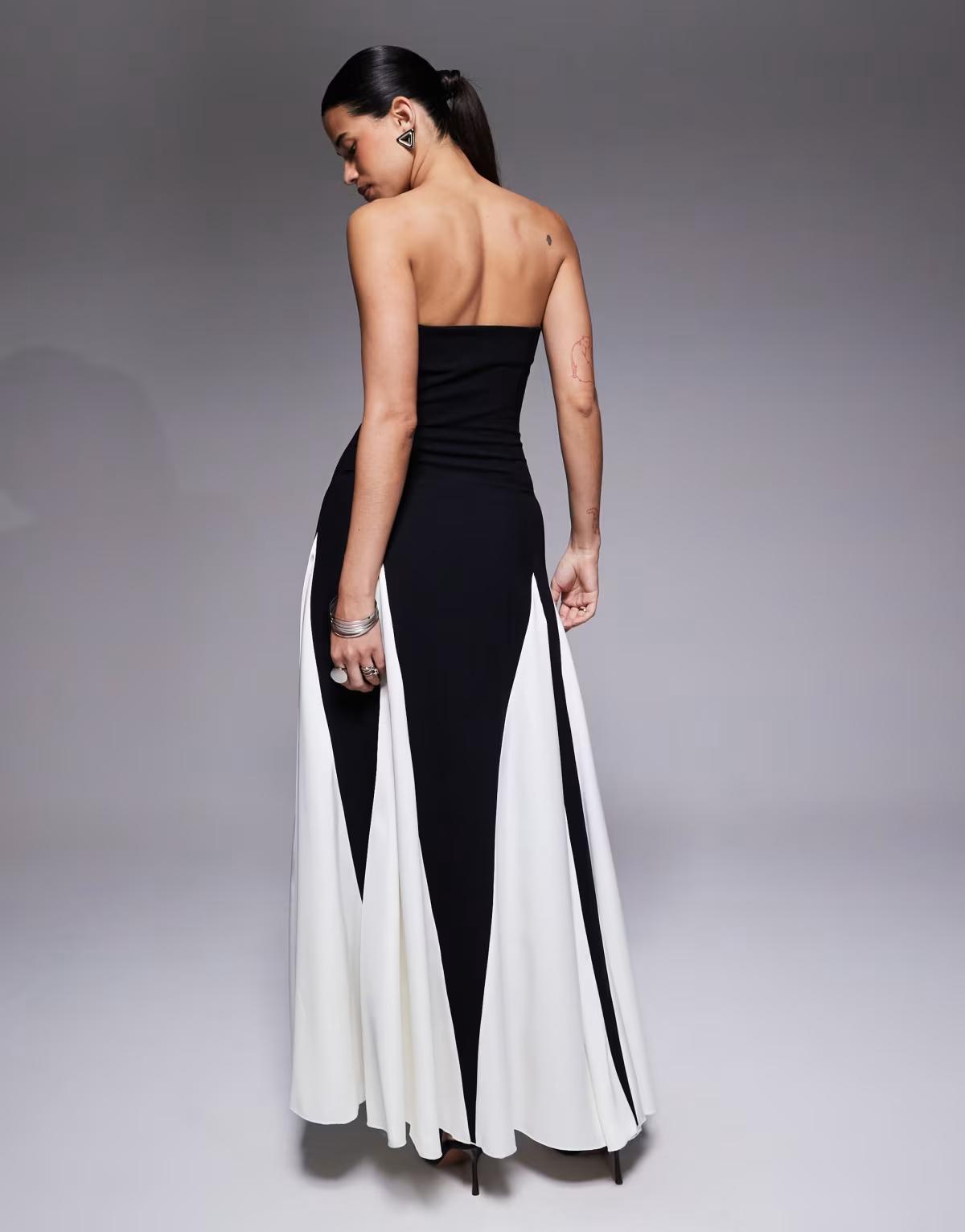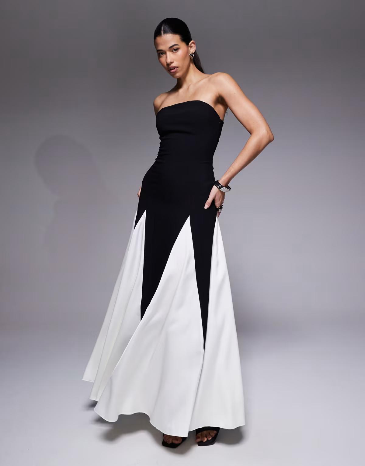 Kaiia exclusive bandeau contrast godet maxi dress in mono