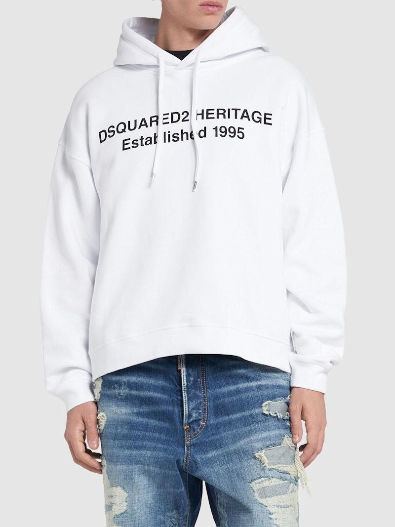 Relaxed fit连帽卫衣 - 白色 - 男士 - Dsquared2 - 不可拆卸风帽配有抽绳.