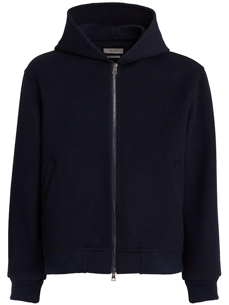羊毛混纺全长拉链连帽卫衣 - 黑色 - 男士 - The Core - 不可拆卸的风帽.