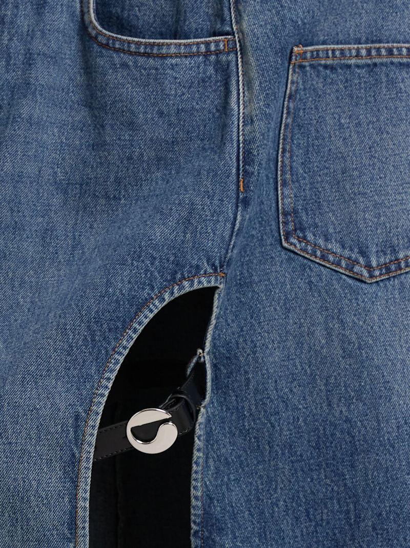 侧面开叉牛仔长款半身裙 - 蓝色 - 女士 - Coperni - 正面纽扣和隐藏式拉链开合.