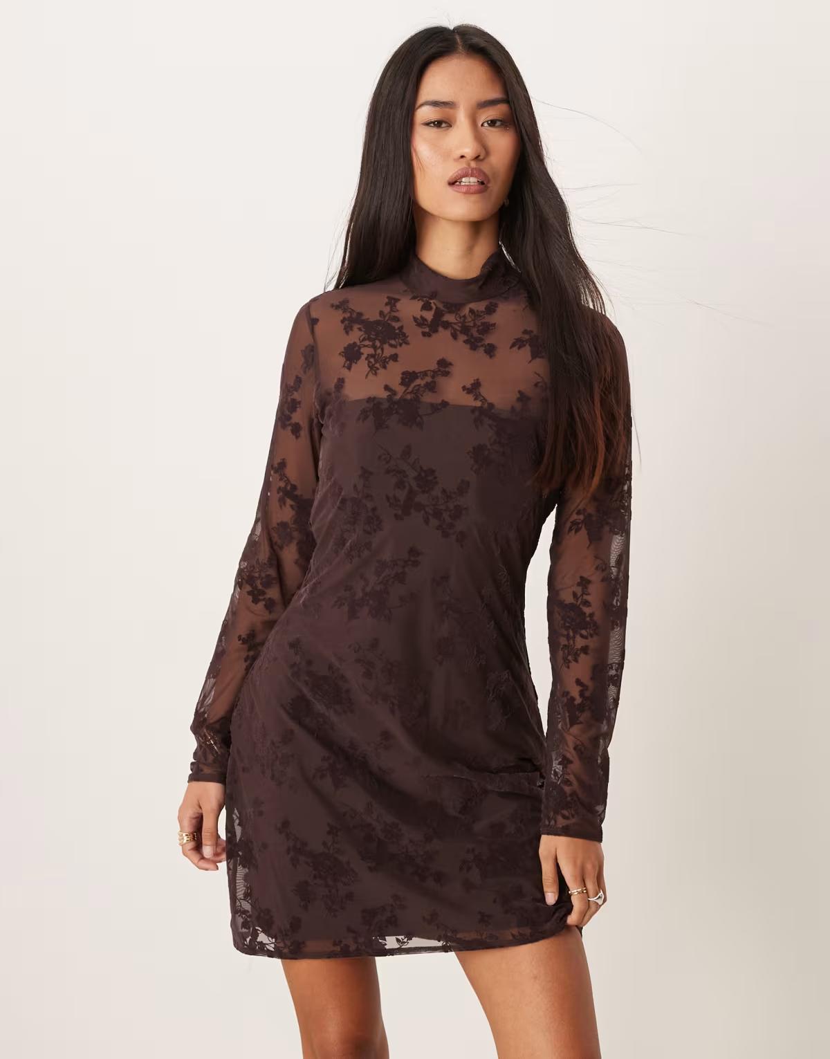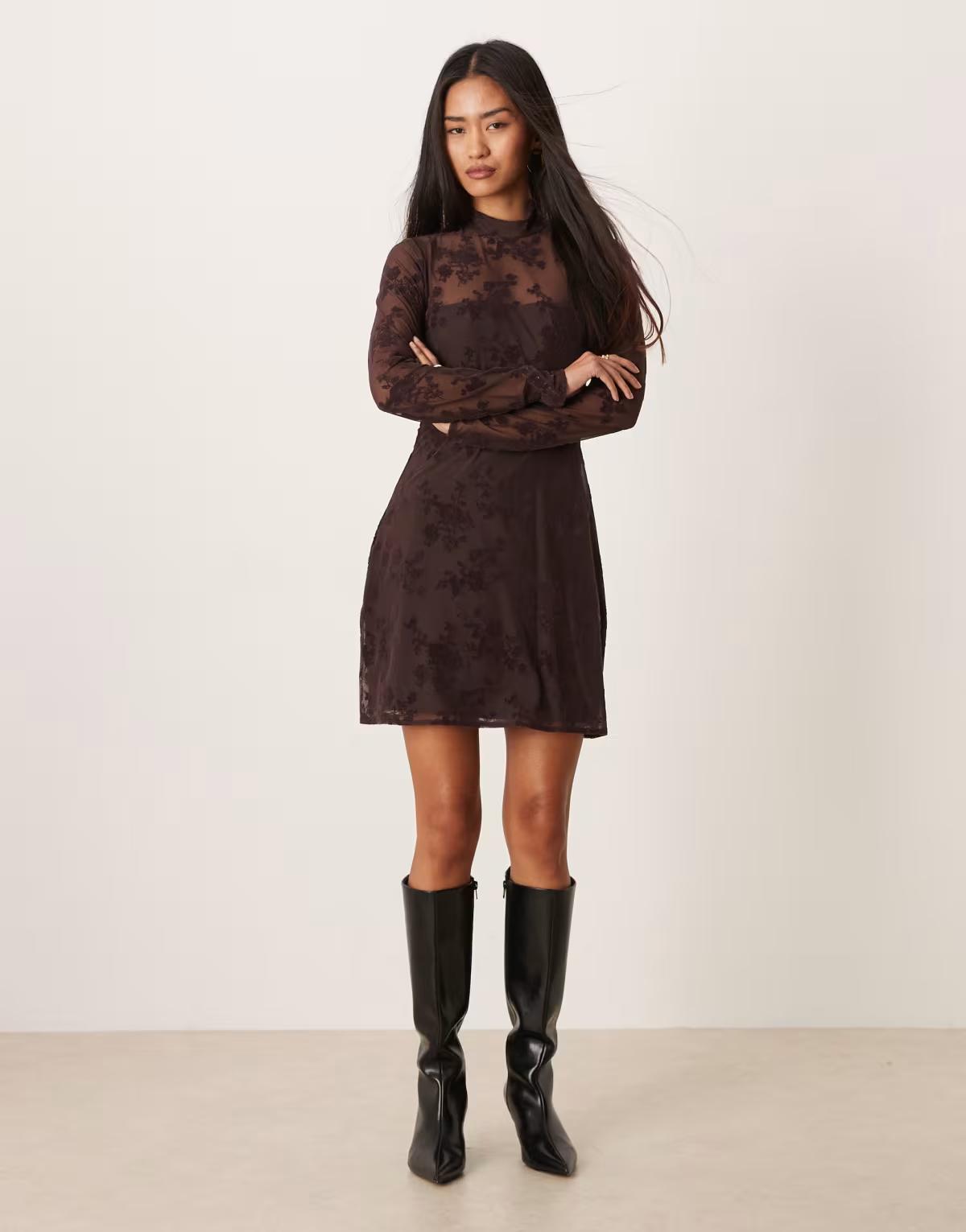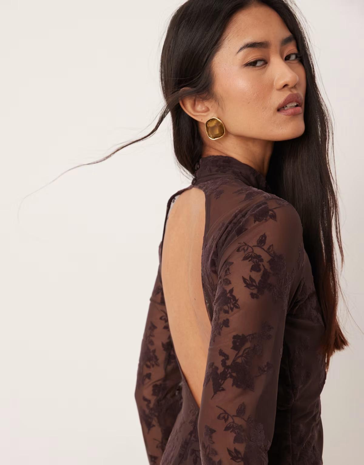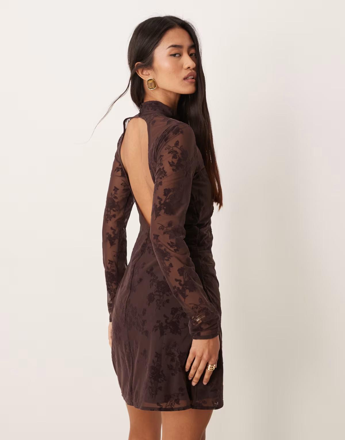 Abercrombie & Fitch high neck open back mini dress with bra insert in brown floral