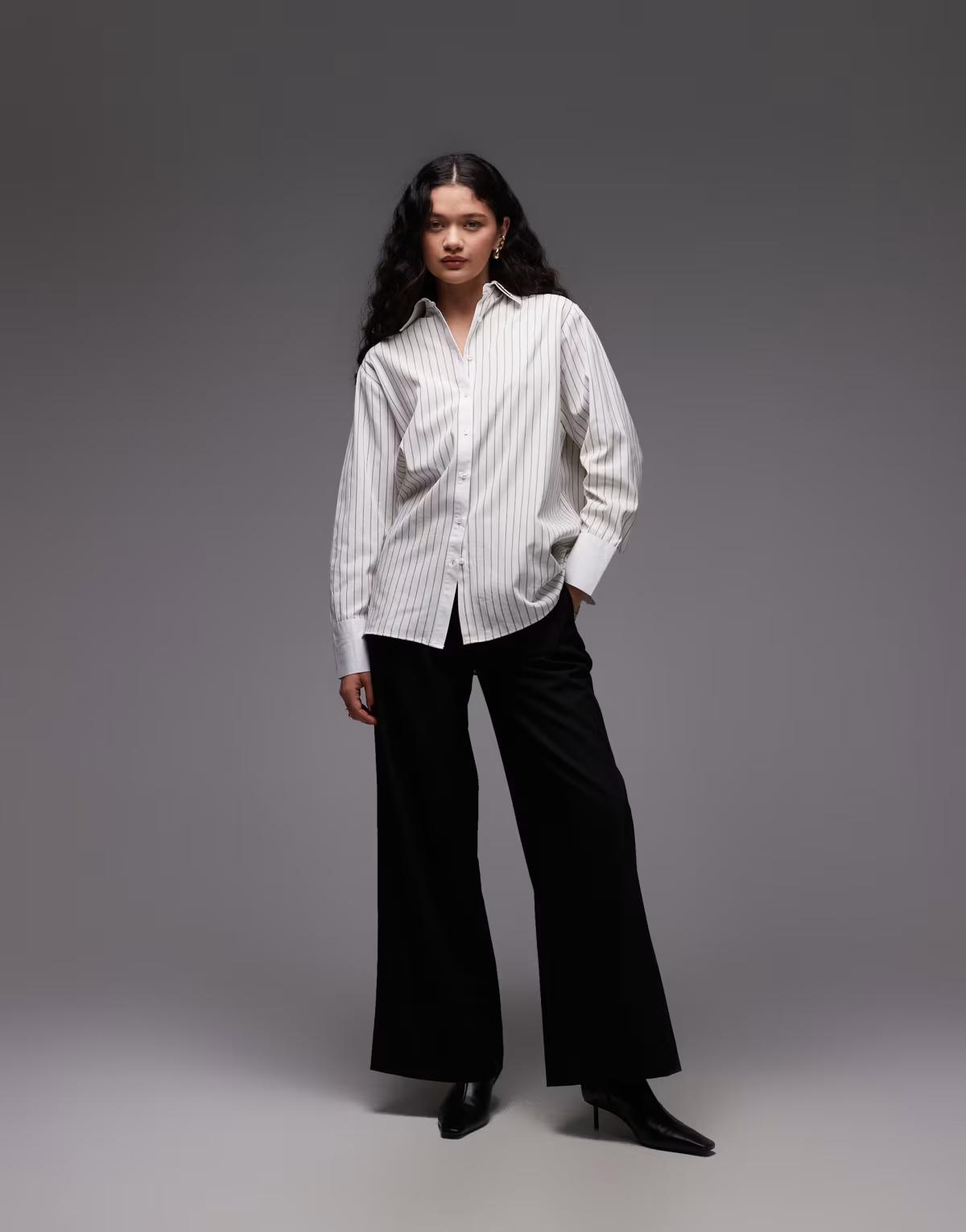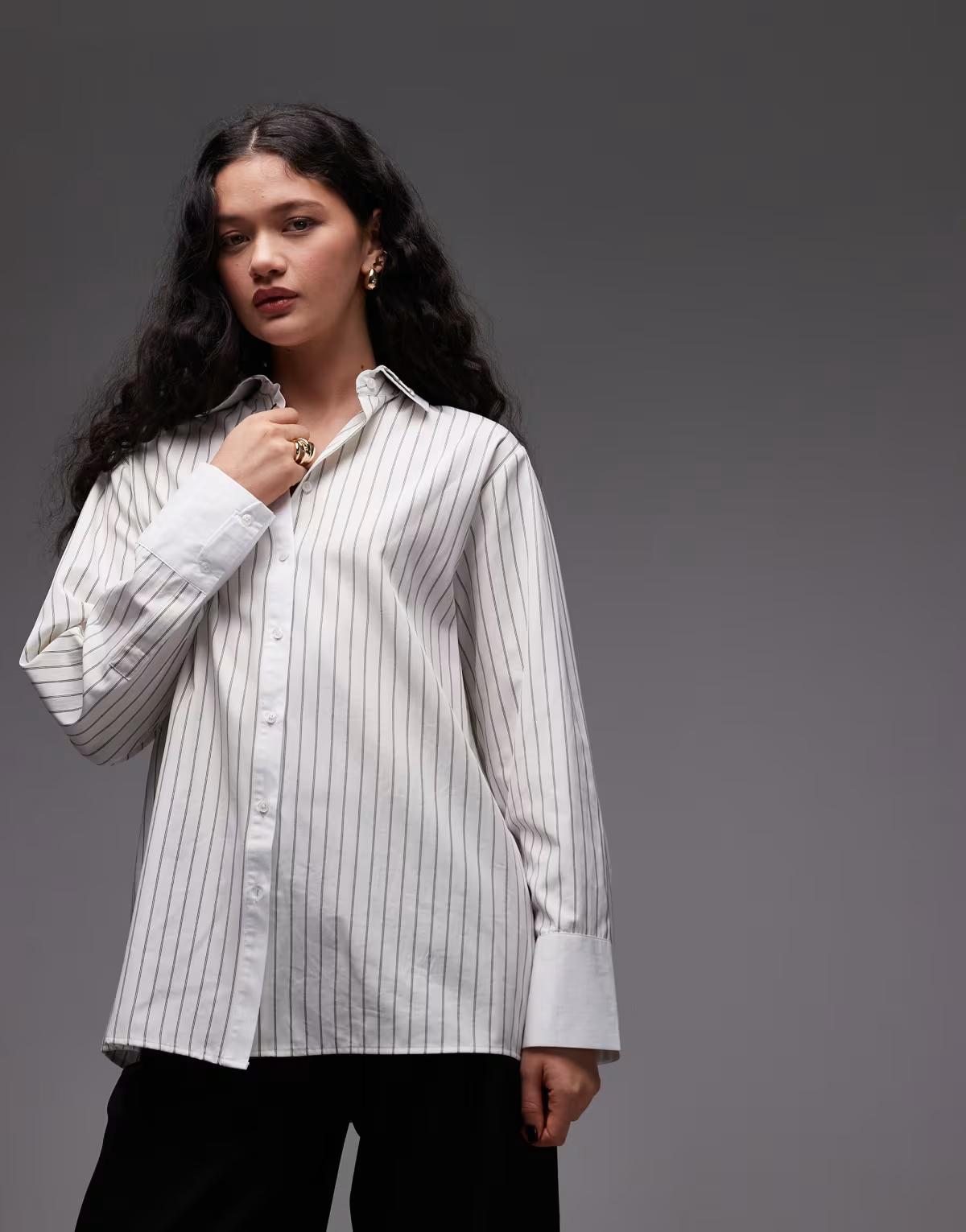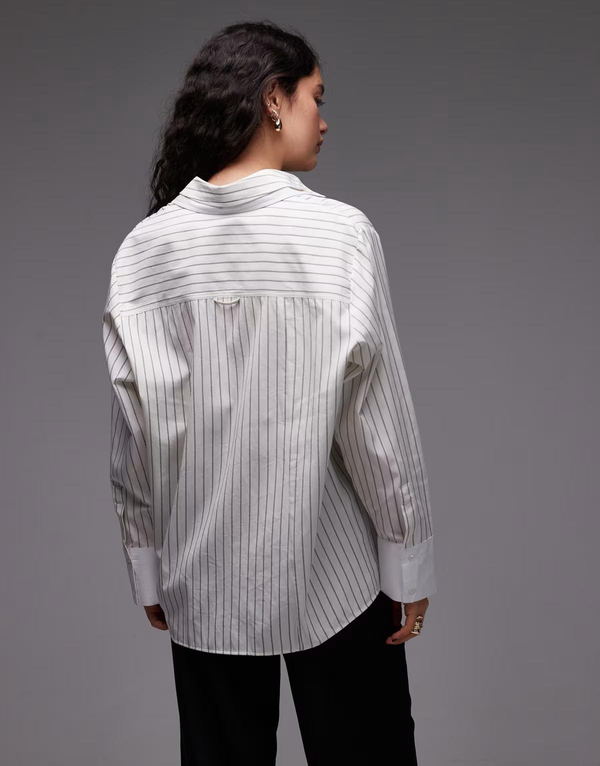 ASOS DESIGN double collar oversized shirt in pinstripe