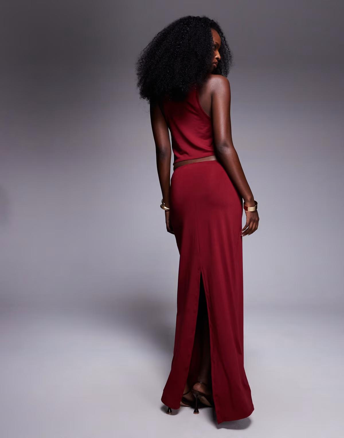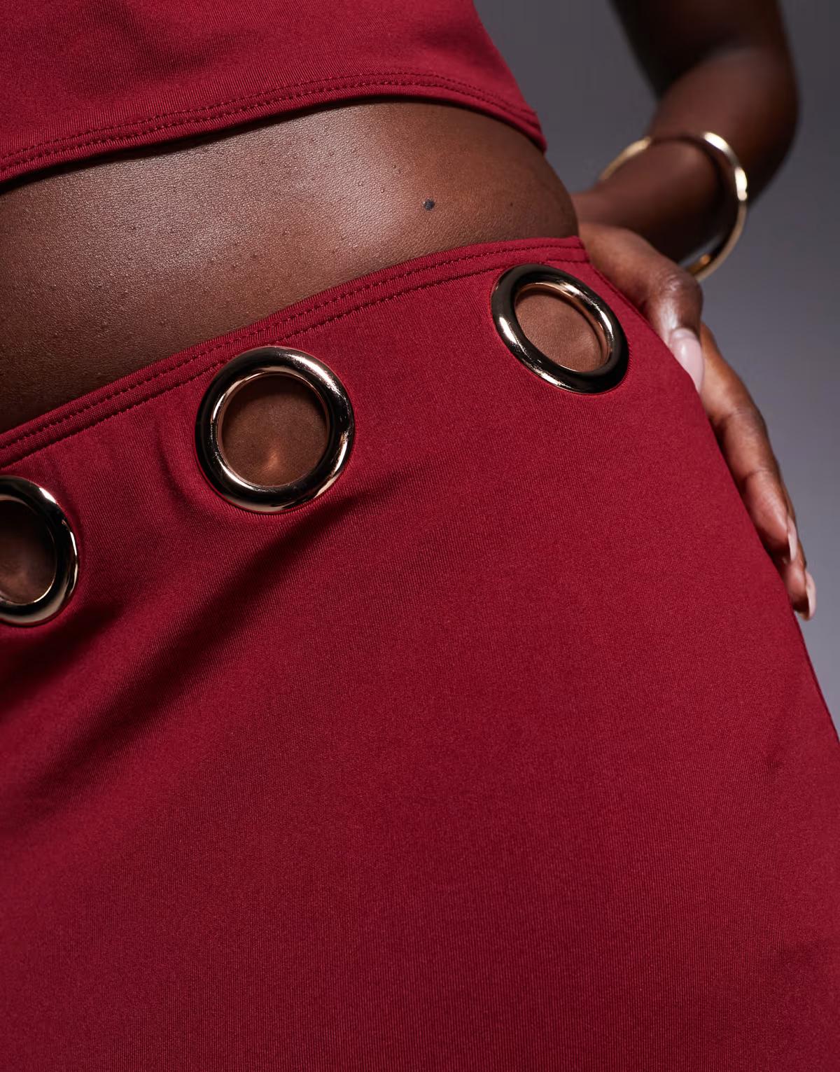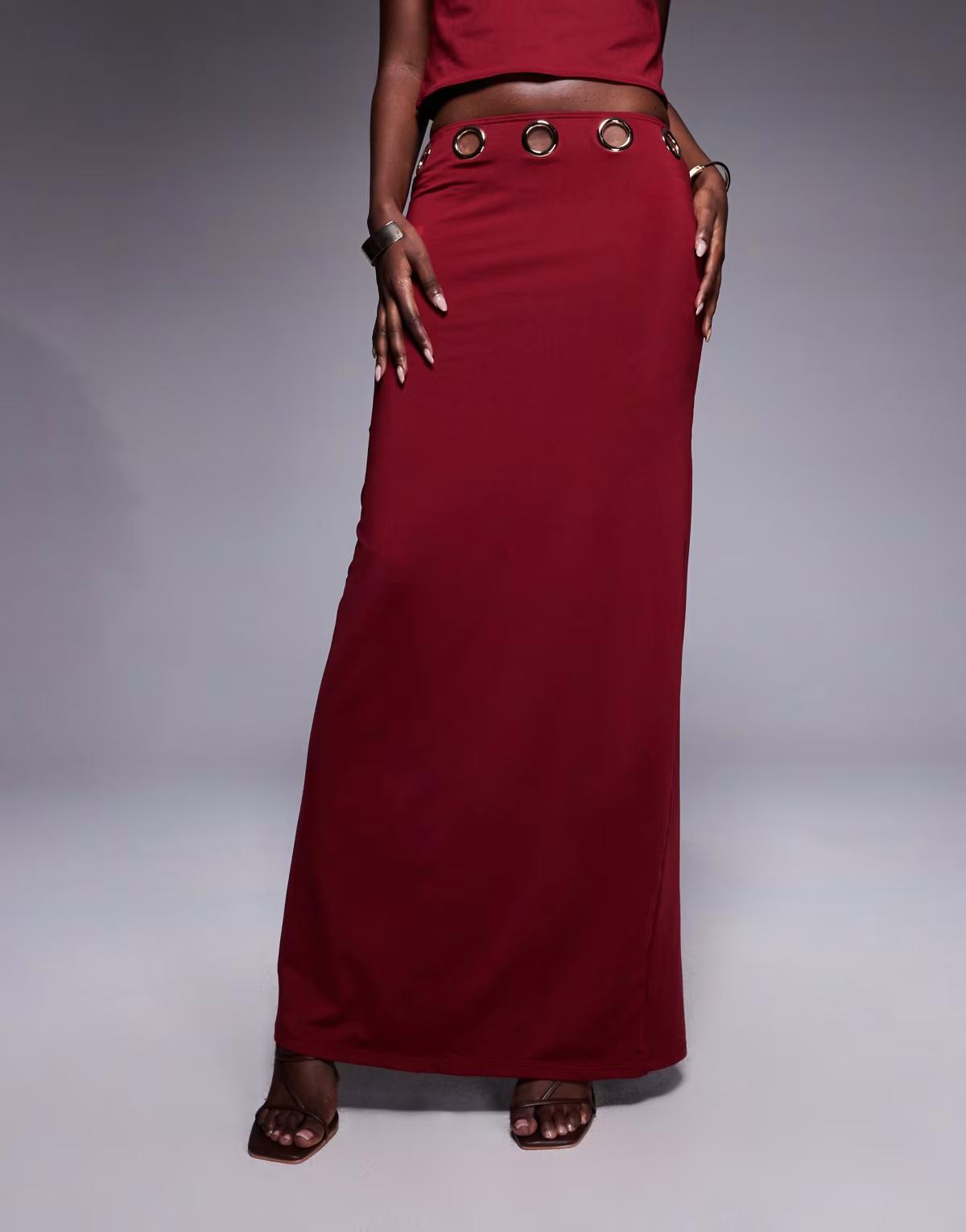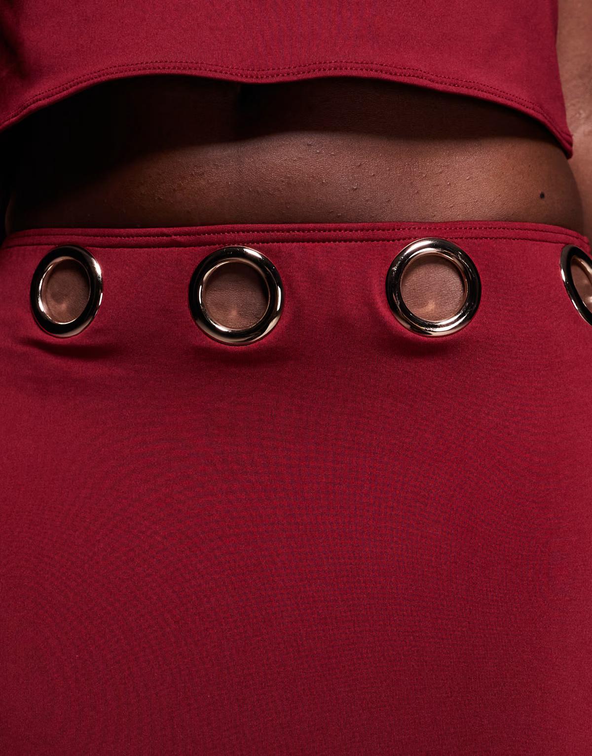 South Beach maxi beach skirt with eyelet detail in burgundy