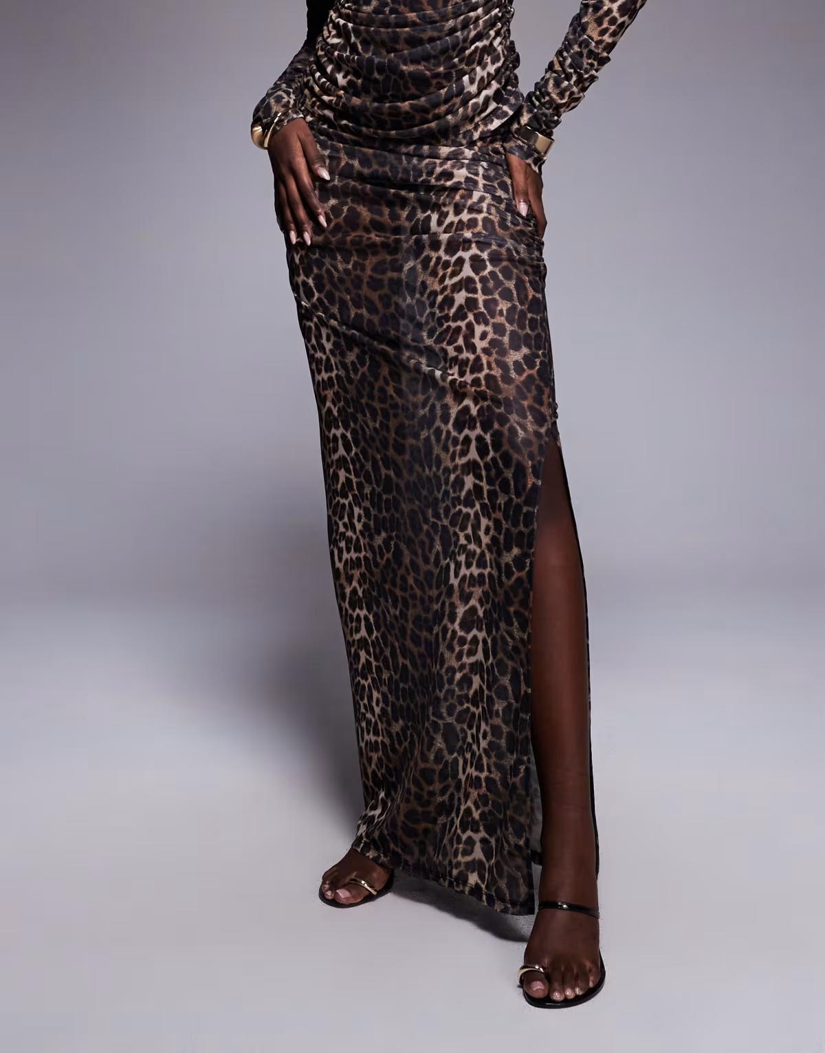 South Beach mesh maxi beach skirt in leopard print