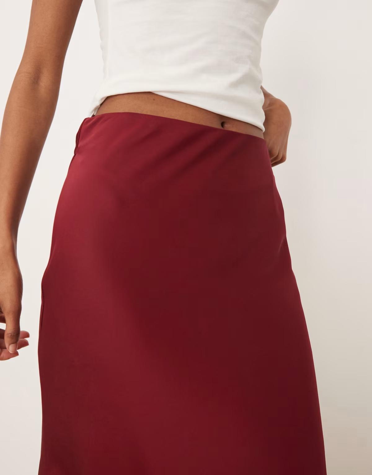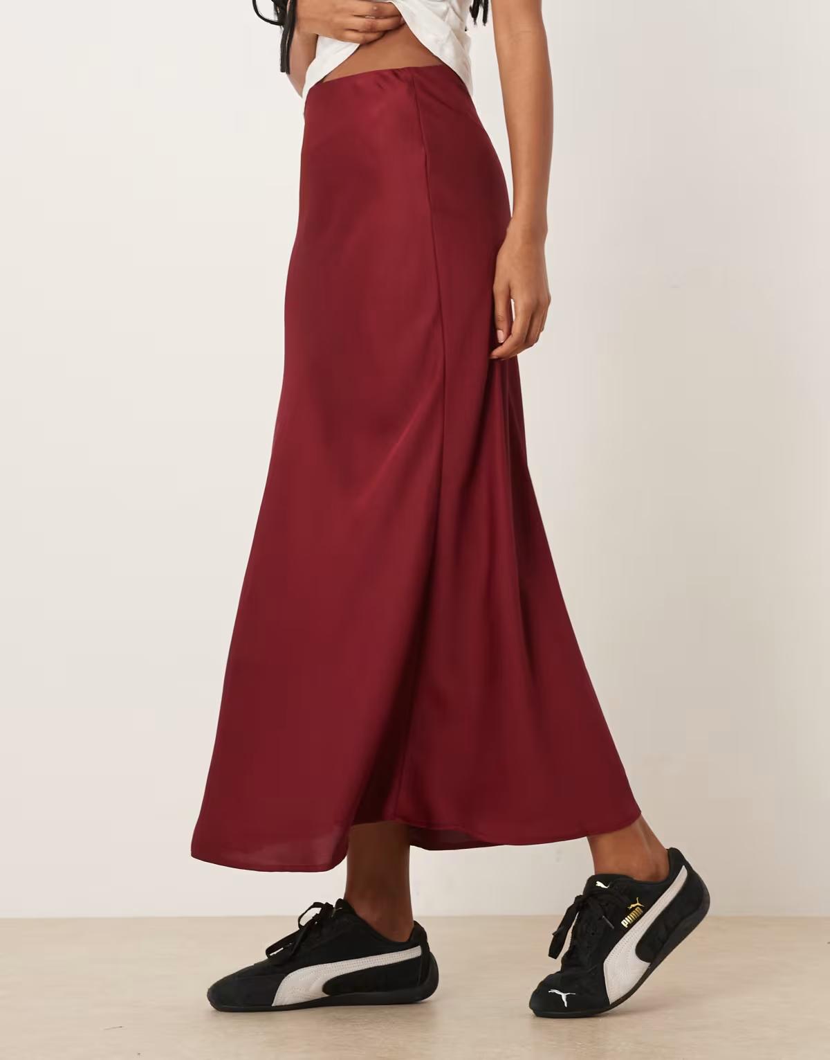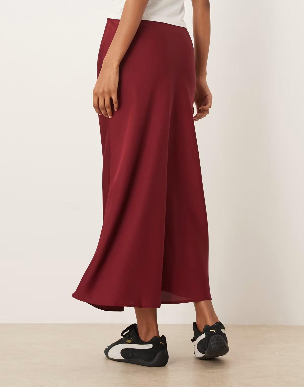 Vila satin maxi skirt in cabernet red