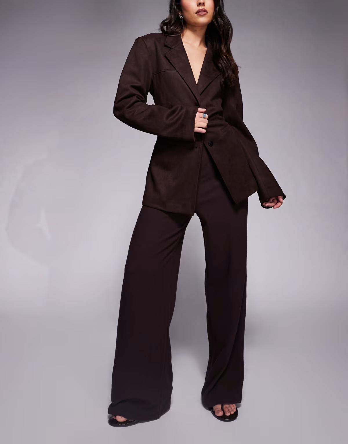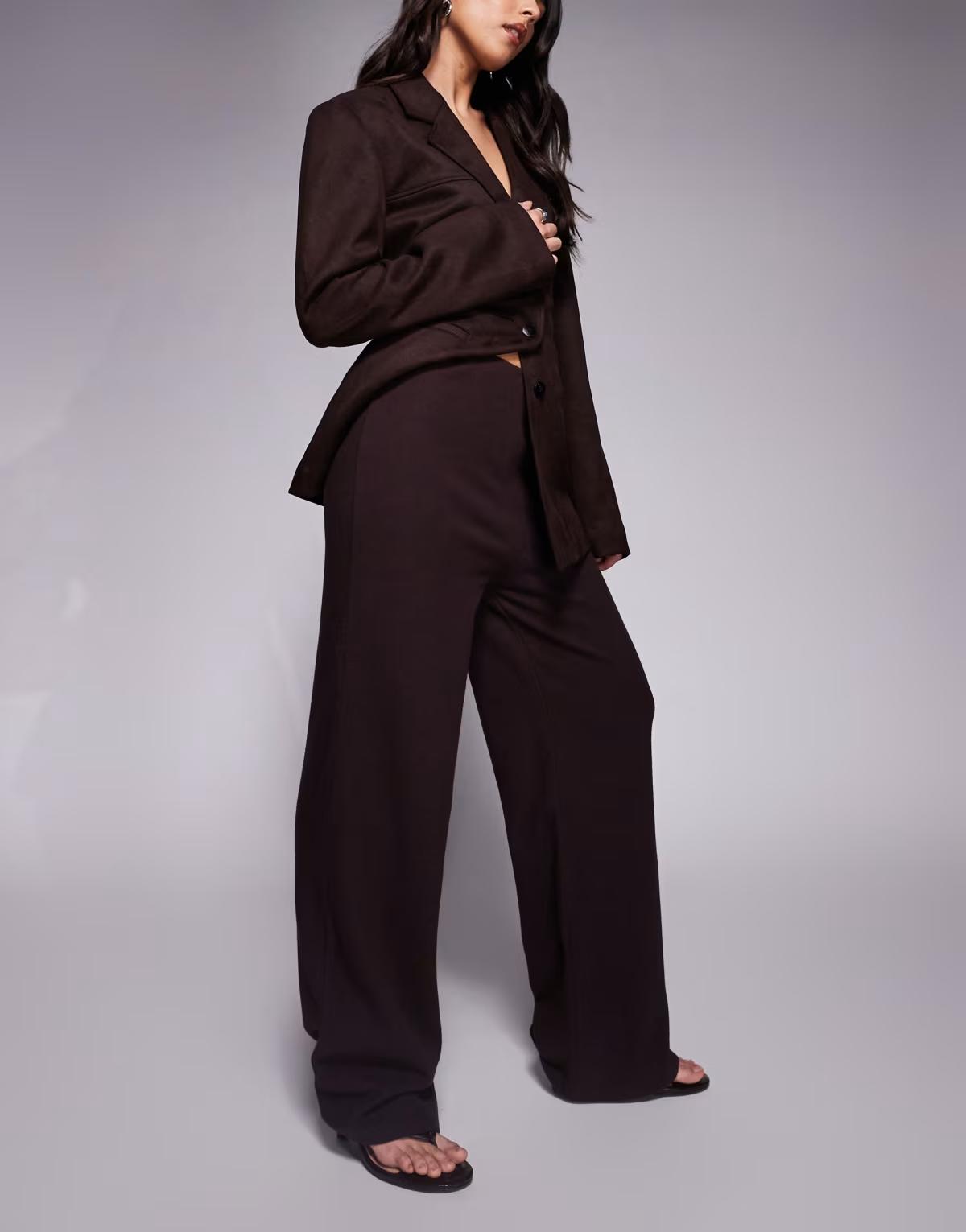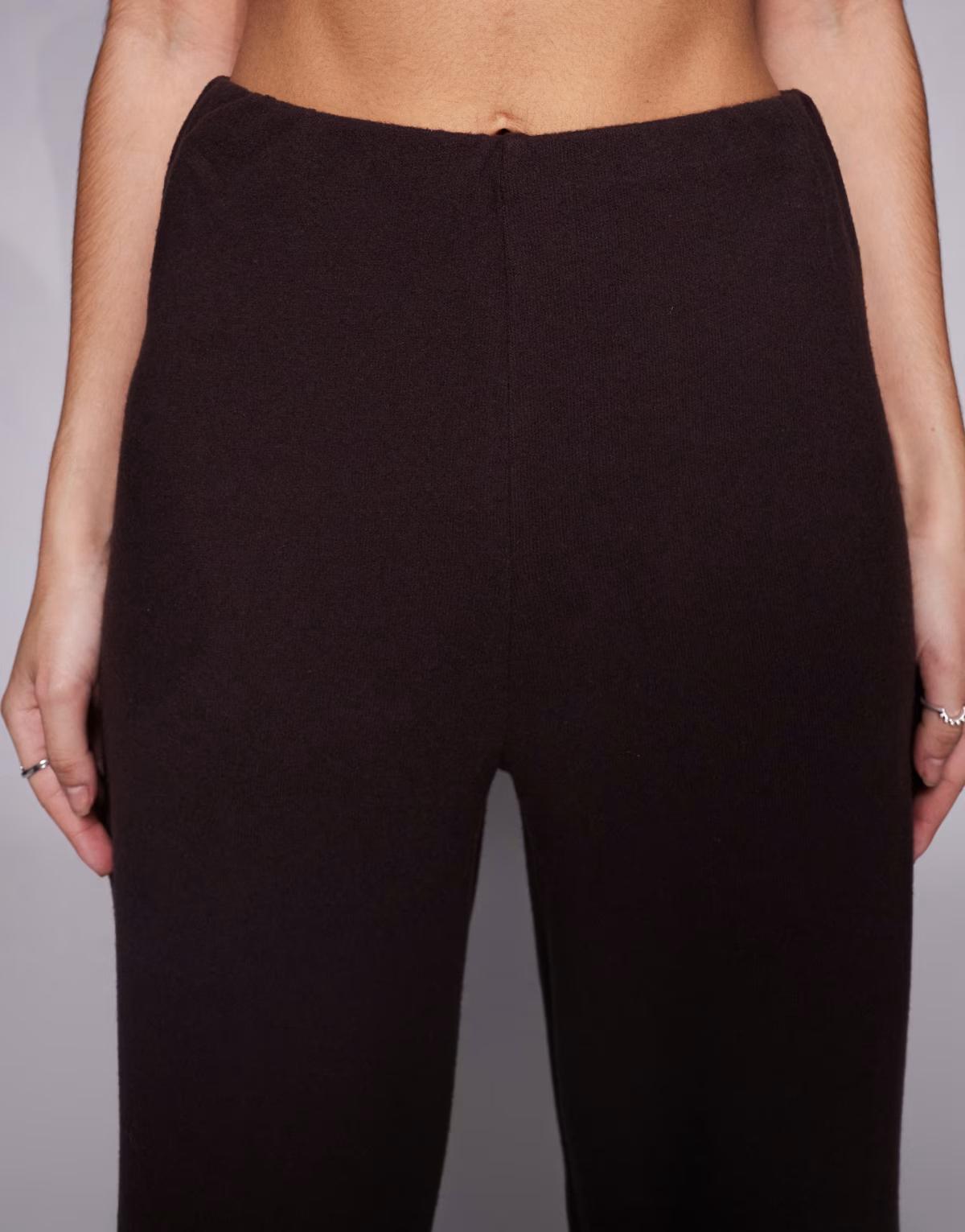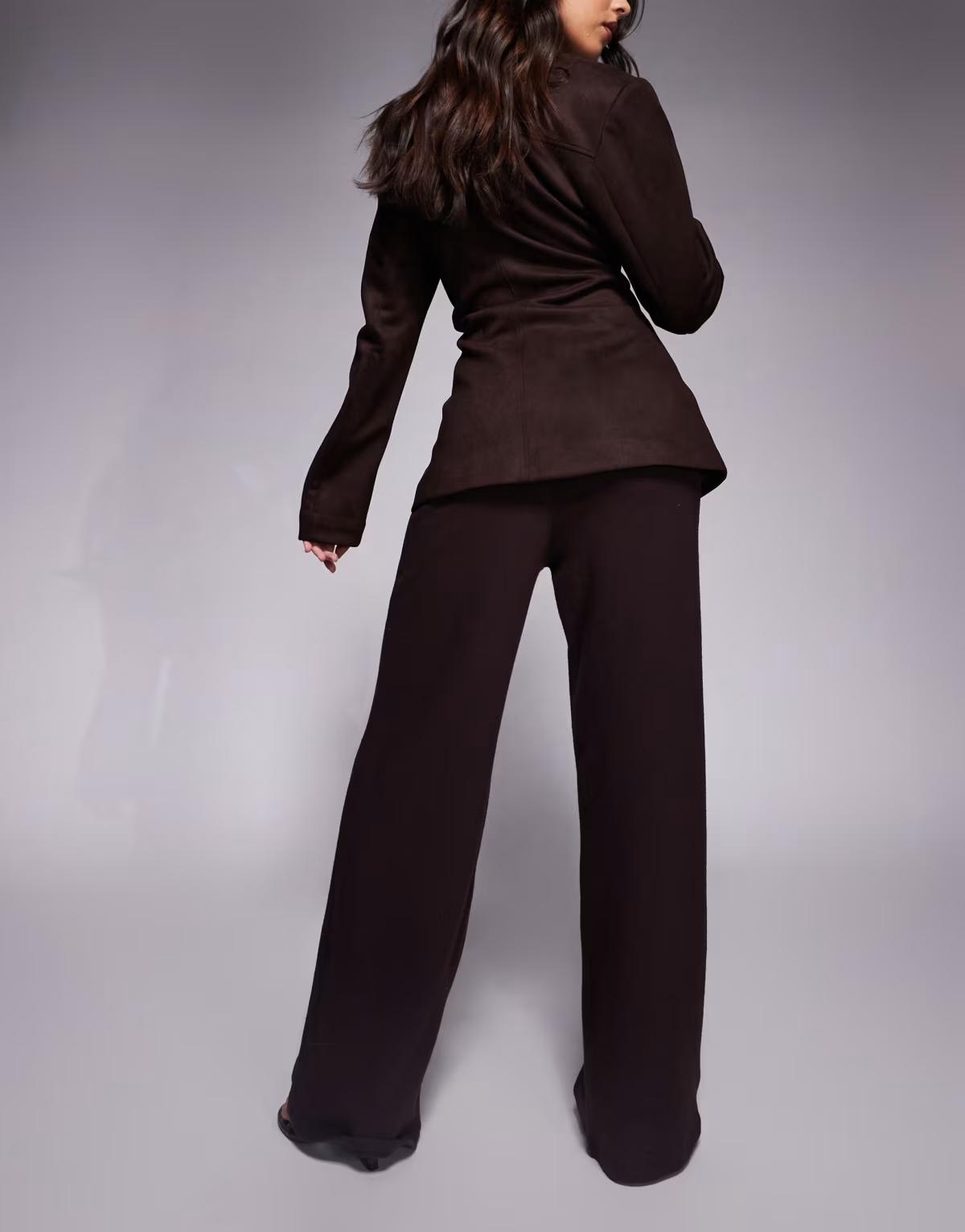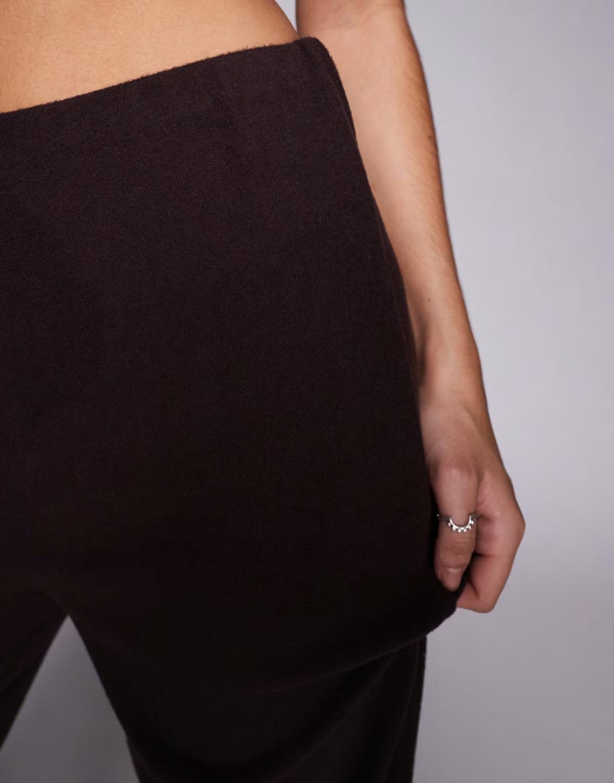 ASOS DESIGN brushed rib straight leg trouser in brown