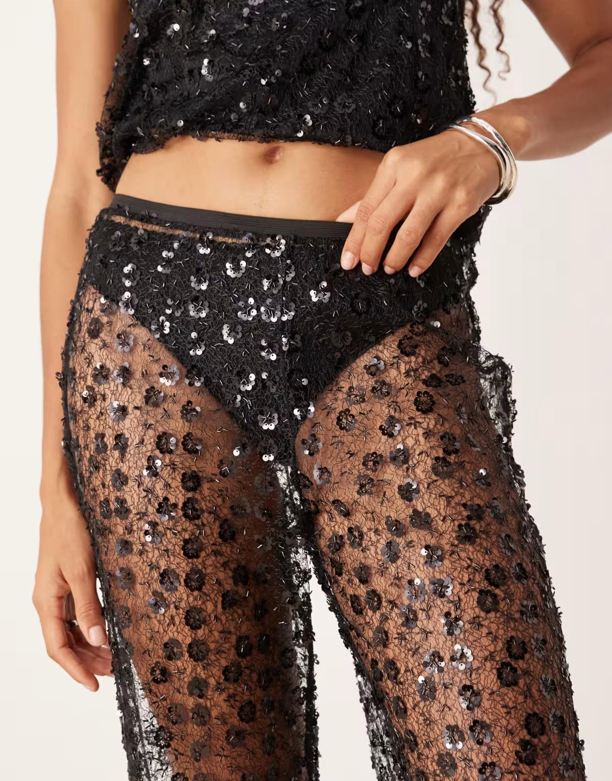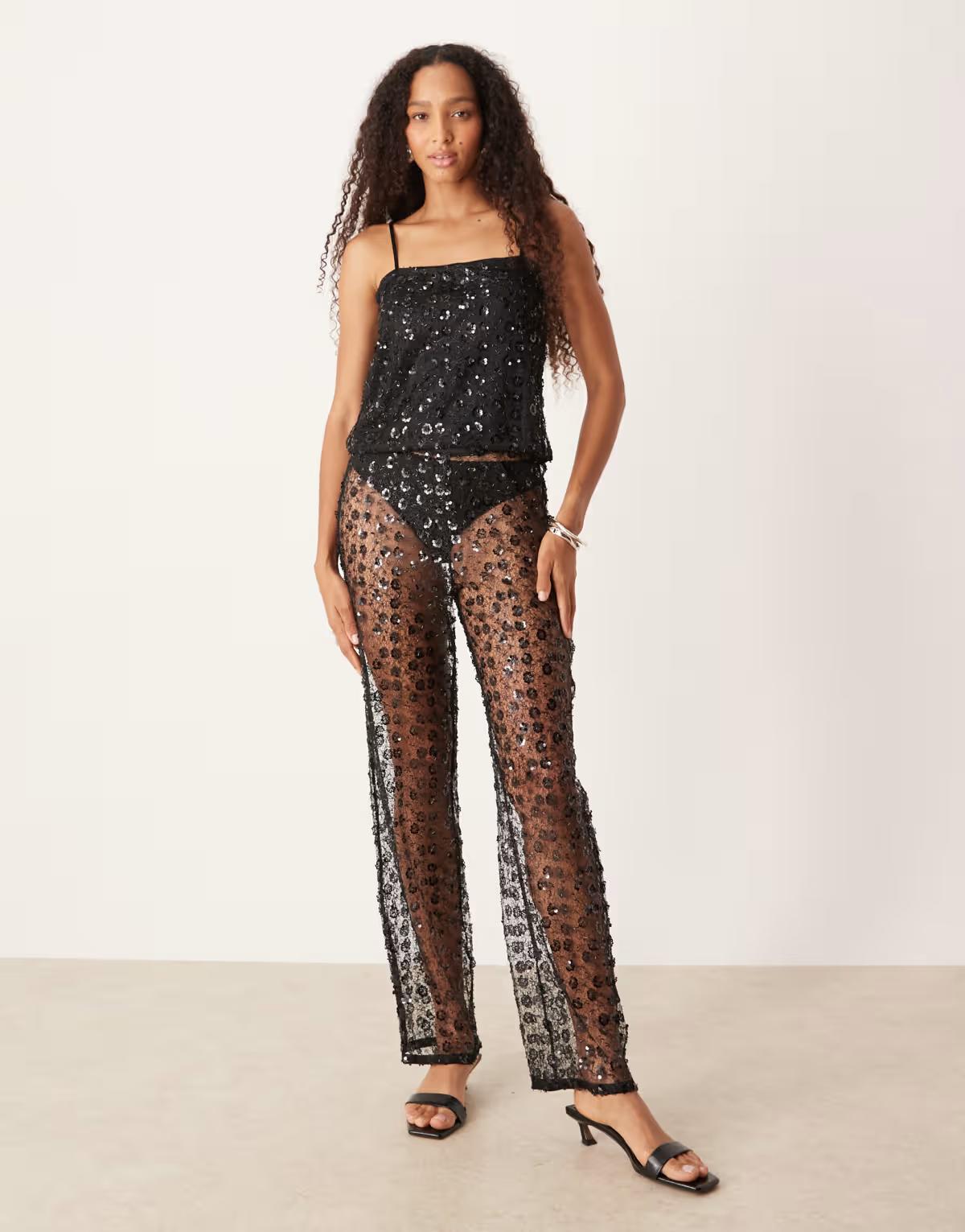 JJXX co ord sequin trousers in black