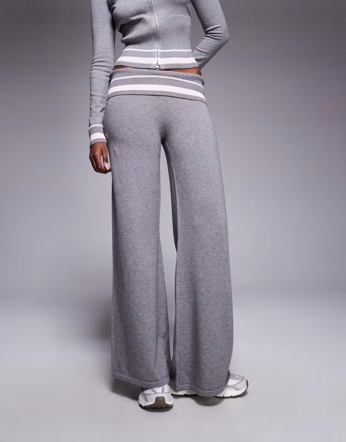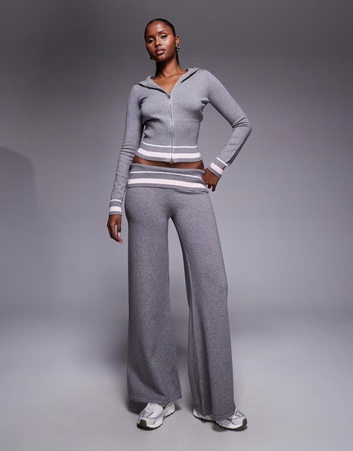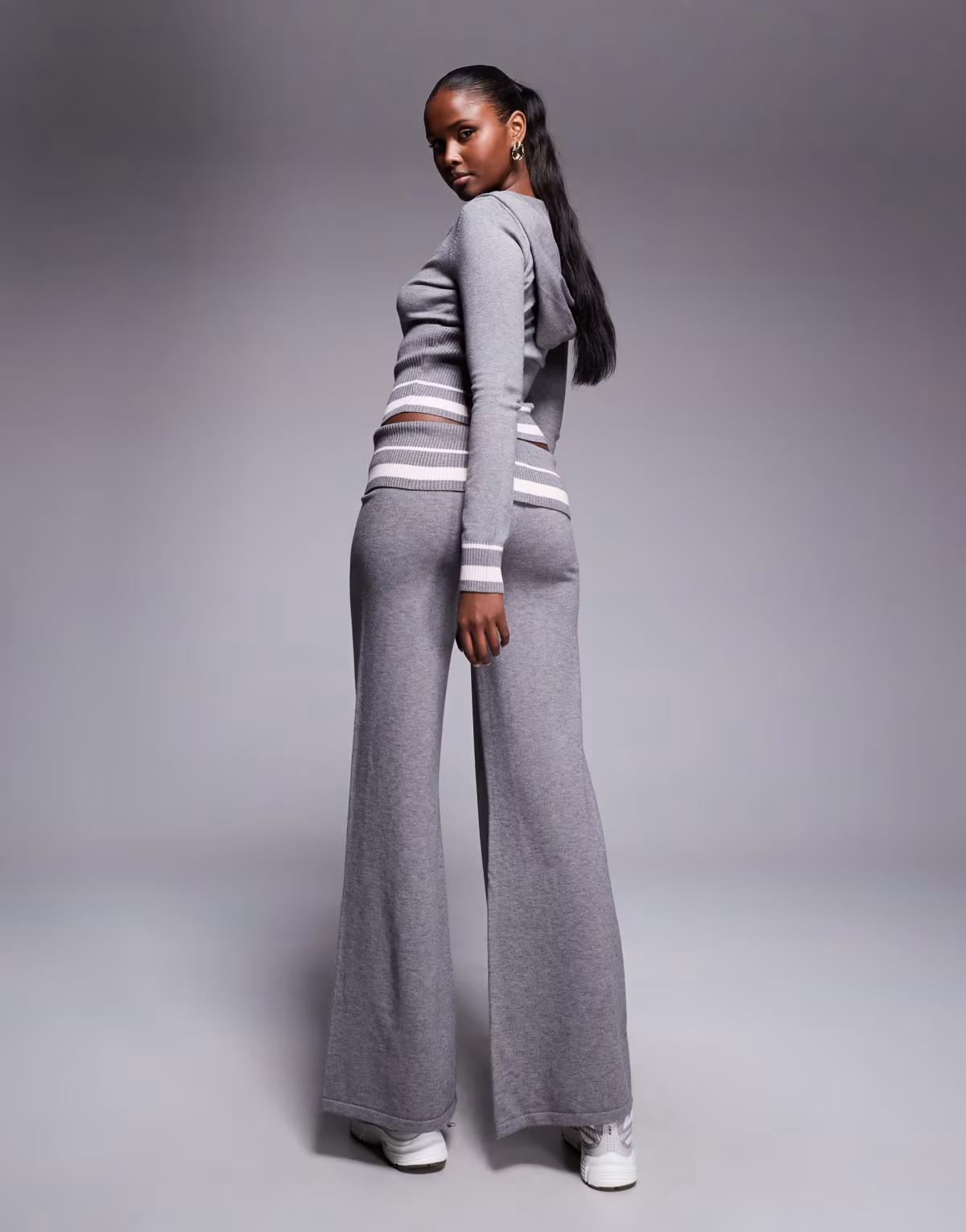 Eikted Kaliya co-ord stripey fold over knit trousers in grey