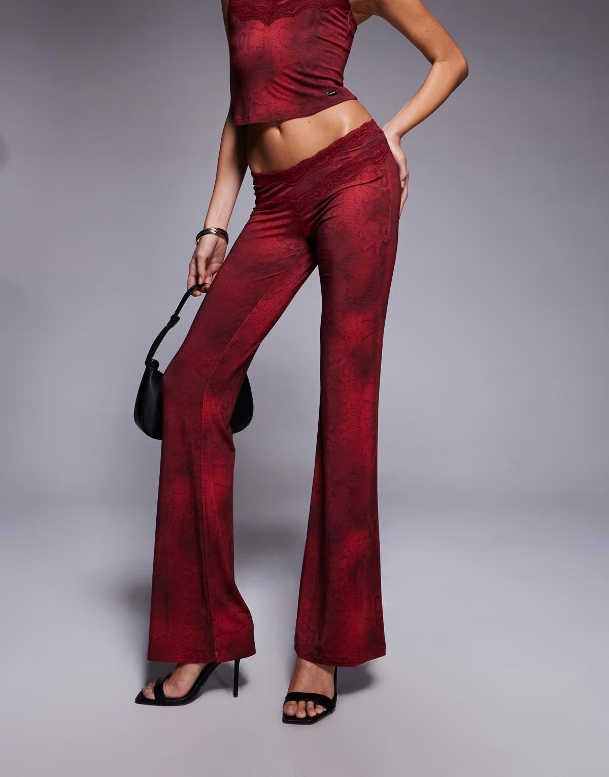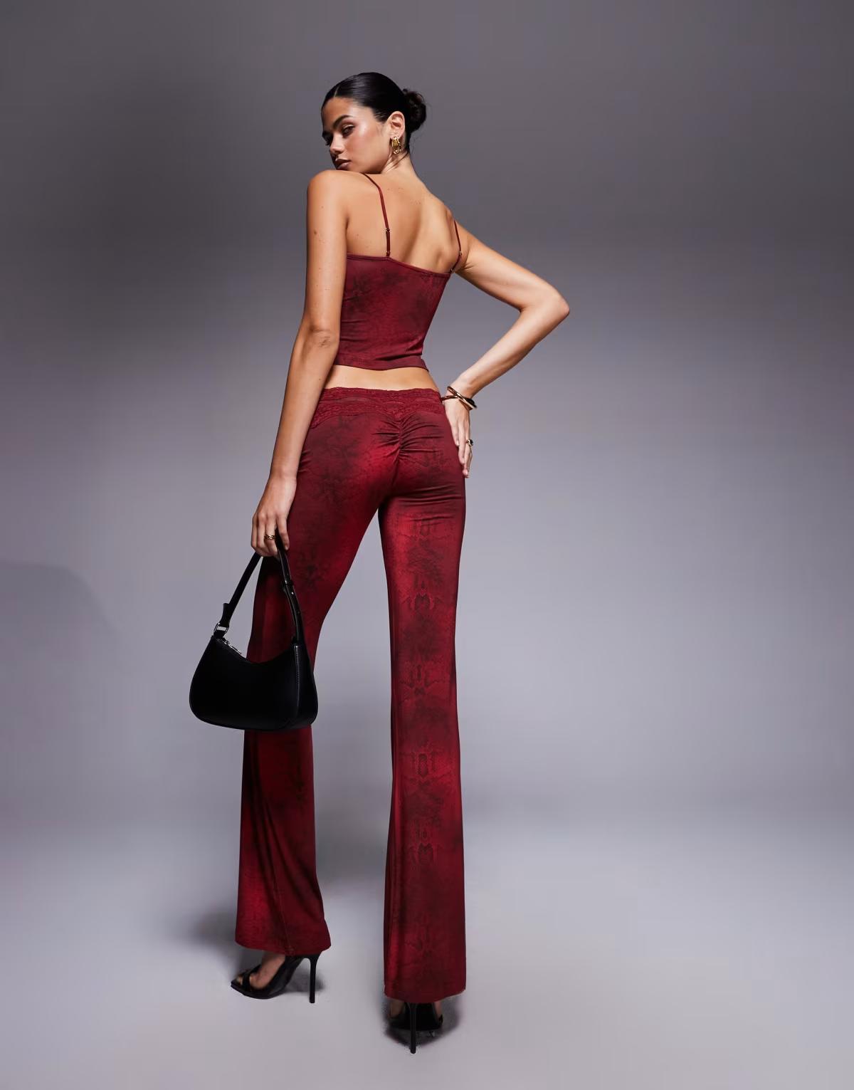 I.AM.GIA Beau double lace trim v front flared trouser co-ord in red print
