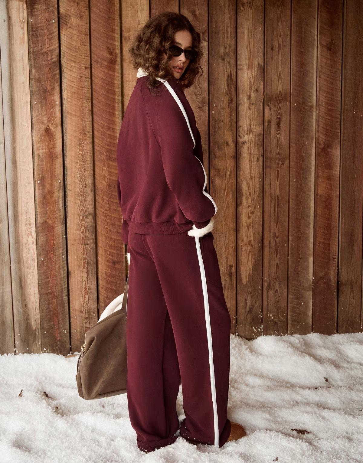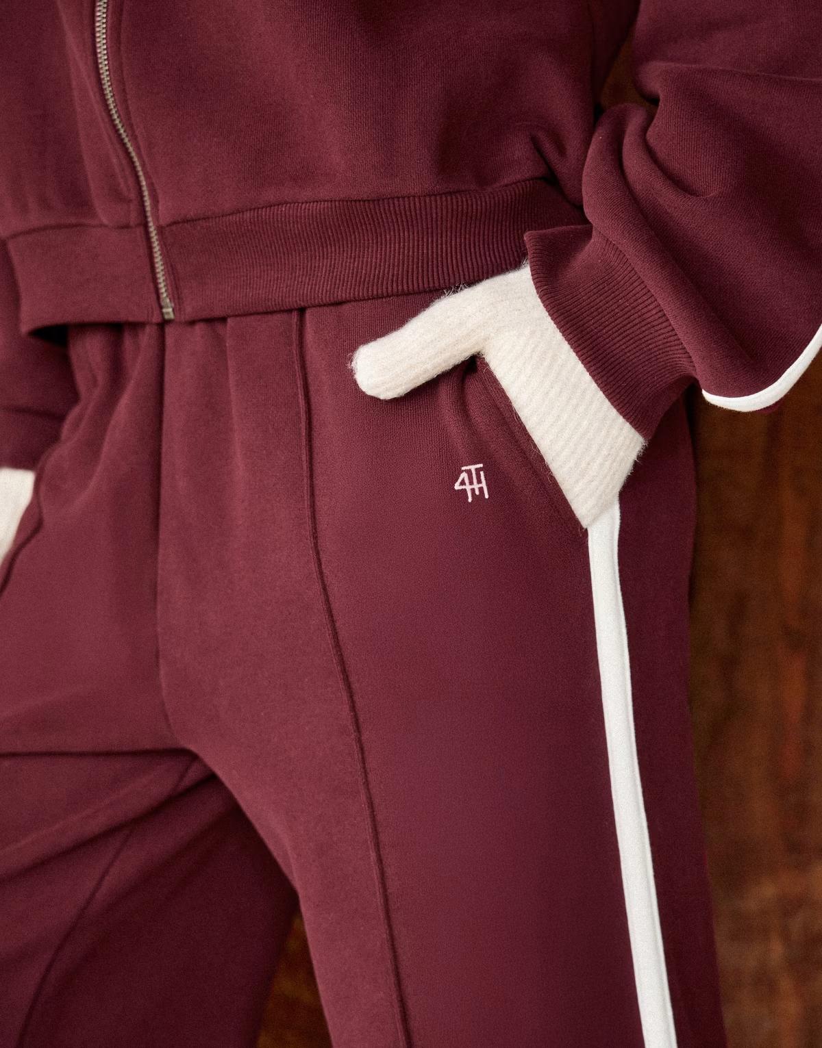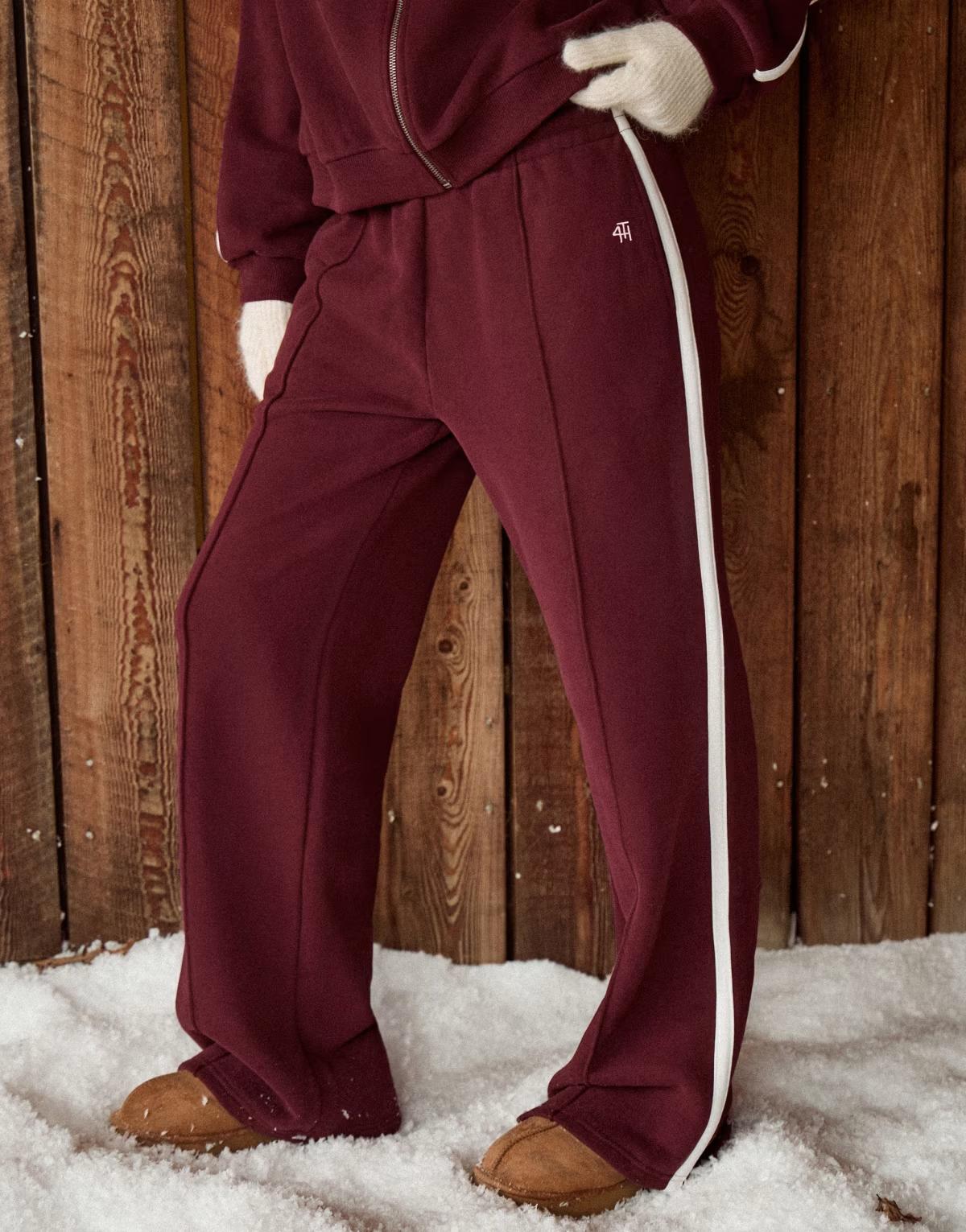 4th & Reckless cotton rich seam front side stripe wide leg track pant co-ord in cherry