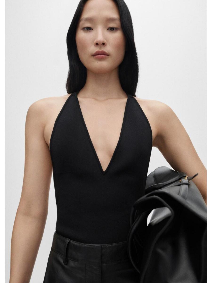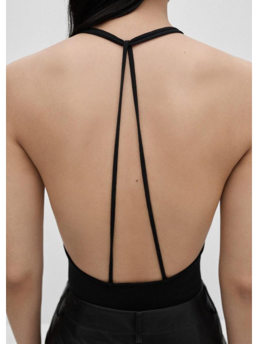 Tejido de punto fino. Sin foam. Tirantes finos. Tirantes cruzados en la espalda. Cierre de botones a presión en la parte inferior. Colección Selection. Diseño entallado. Escote de pico. Espalda abierta. Sin mangas. Una selección de prendas refinadas, confeccionadas con tejidos de calidad para construir un armario femenino y contemporáneo