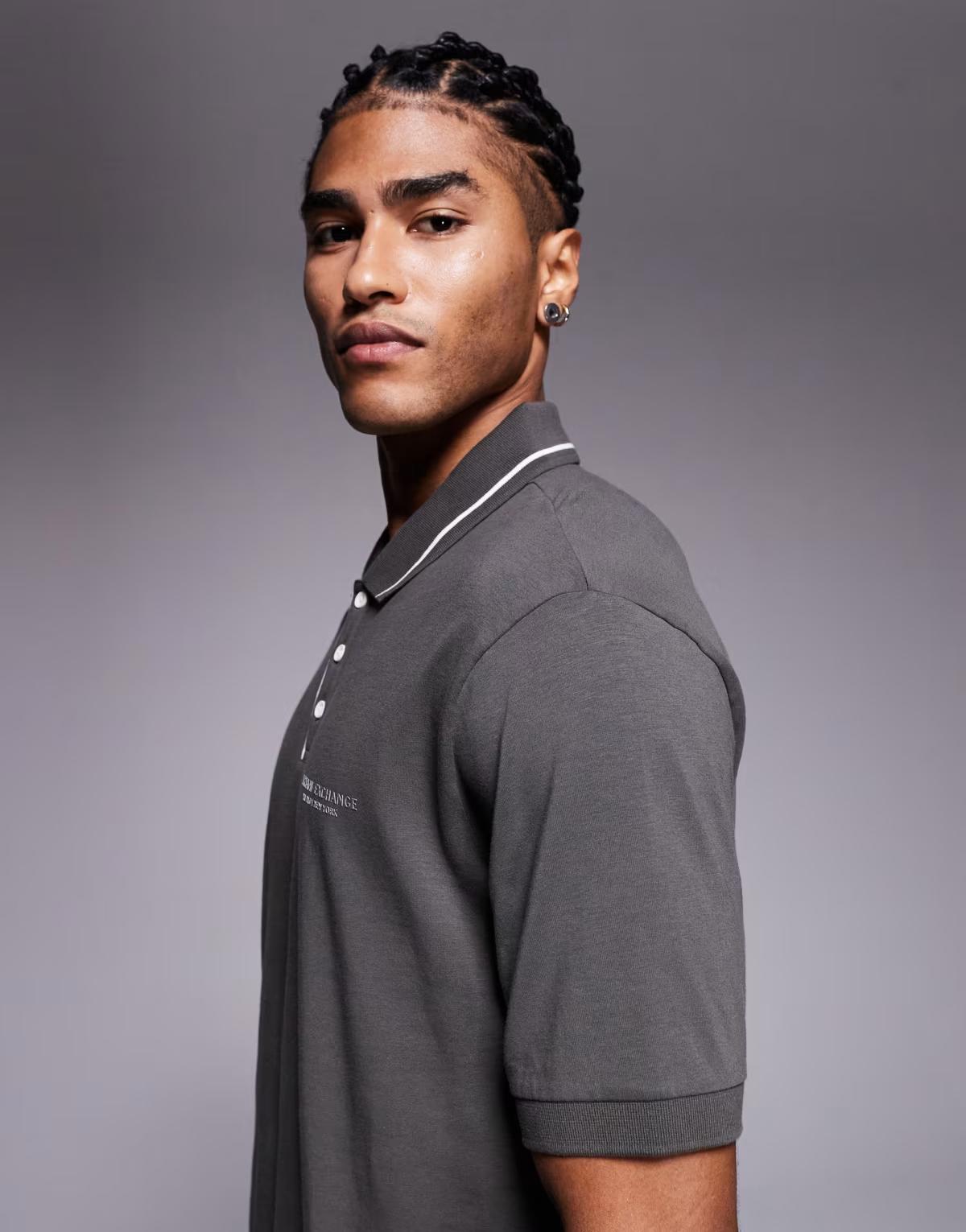 Main: 95% Cotton, 5% Elastane.One of the most iconic names in fashion history, Giorgio Armani launched Armani Exchange in 1991 as a youthful, sportier sub-label of his eponymous brand. Inspired by the laid-back street style Armani observed in his favourite cities – Milan, New York, London and Tokyo – the collection reimagines everyday staples across a range of clothing and accessories. Master low-key dressing from head to toe with its bags, watches, jersey and denim.