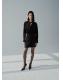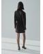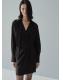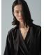 Diseño recto. Diseño corto. Cuello pico con solapa. Escote cruzado. Lazo desmontable en el cuello. Manga larga con puños abotonados. Pliegues en la cintura. Sin cierre