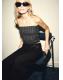 Confeccionado en tejido de punto con lúrex, este diseño entallado presenta un cuello palabra de honor sin mangas