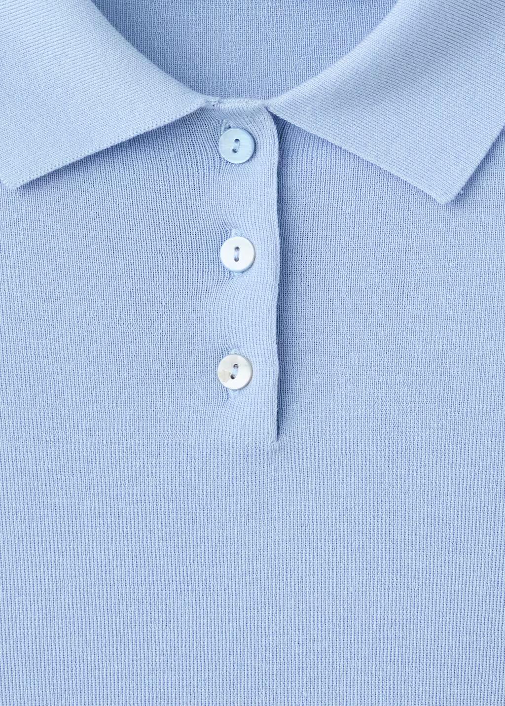 Confeccionado en tejido de punto fino mezcla de algodón y lana, este jersey presenta un diseño recto con cuello polo y manga larga