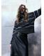 Confeccionado en tejido de punto medio con patrón de rayas, este diseño presenta cuello caja y manga larga
