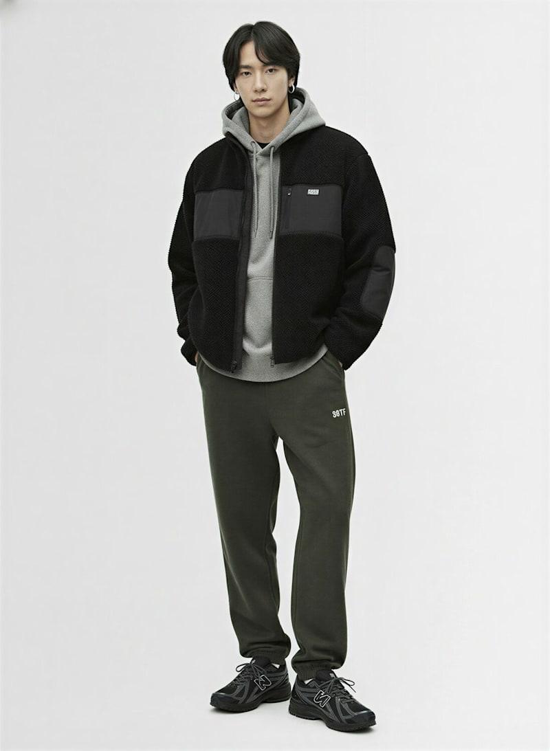 毛绒泰迪夹克 - 黑色 - 男士 - SOTF - 正面拉链开合.
